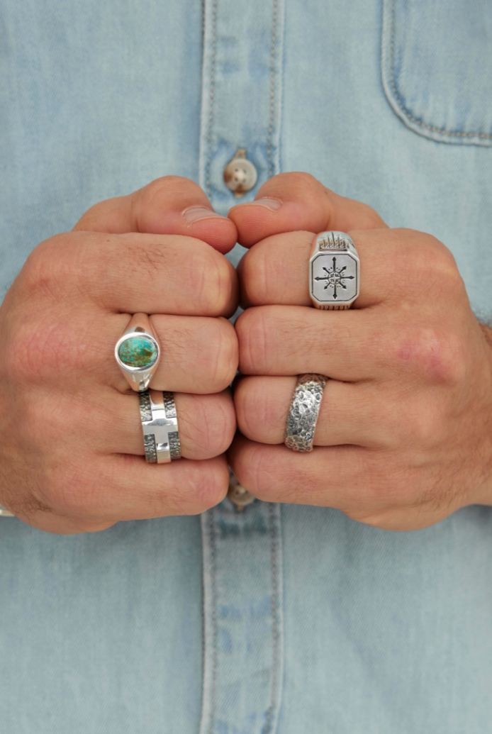 Spoil yourself or the man in your life with our collection of unique mens jewellery. Handmade by our master silversmiths our mens range include every day signet rings, statement bands, unique cuffs and necklaces designed to elevevant his everyday.