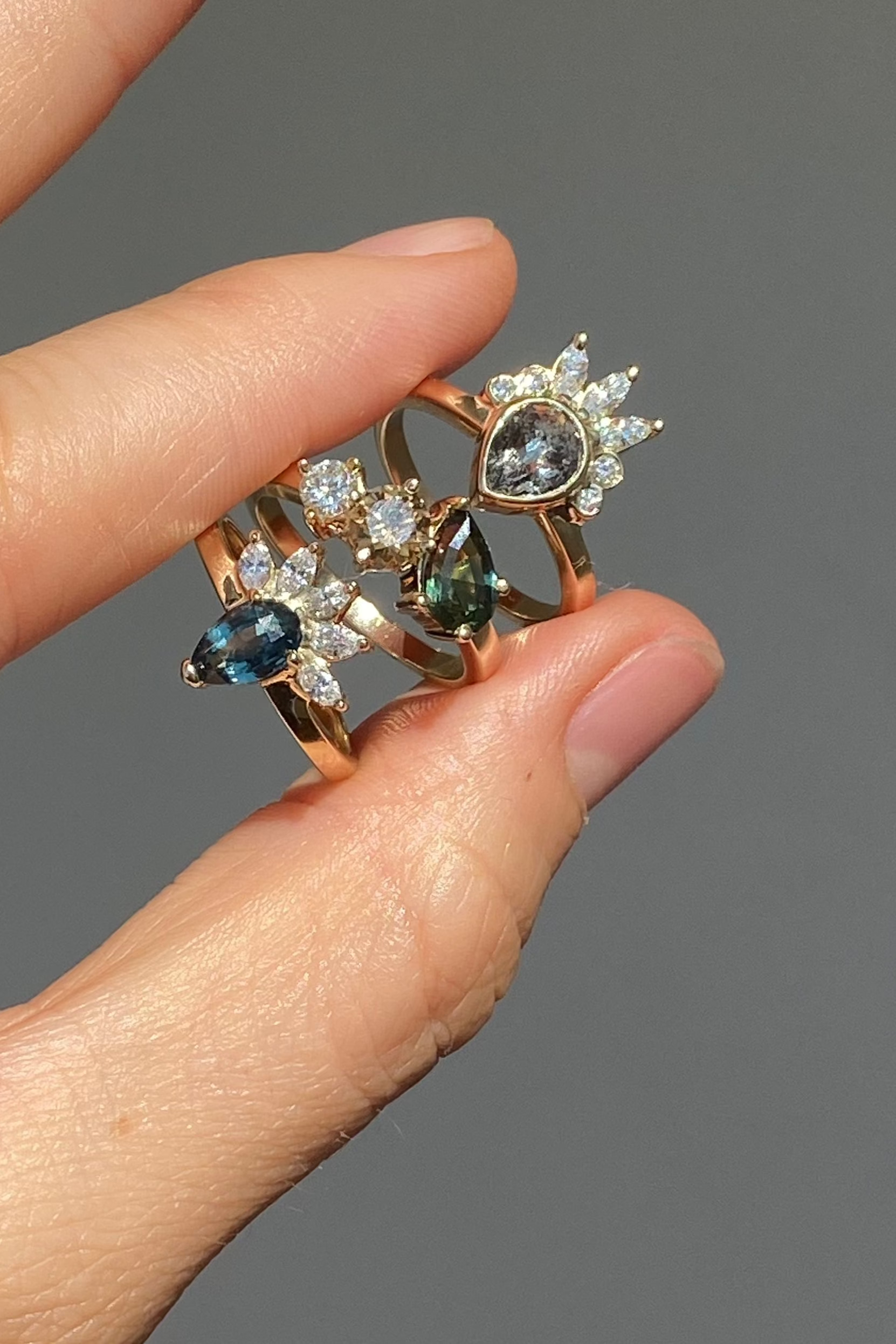 We love creating one of a kind, unique and timeless pieces whether it be for an engagement, celebration or heirloom piece. Although all our bespoke pieces available to purchase through the website are custom made to order, we also offer a custom bespoke process where we are able to work individually with a customer bring to life their ideal piece. This involves working with our designer and team to create a unique design, custom source stones, and incorporating other individual details such as hand stamping.