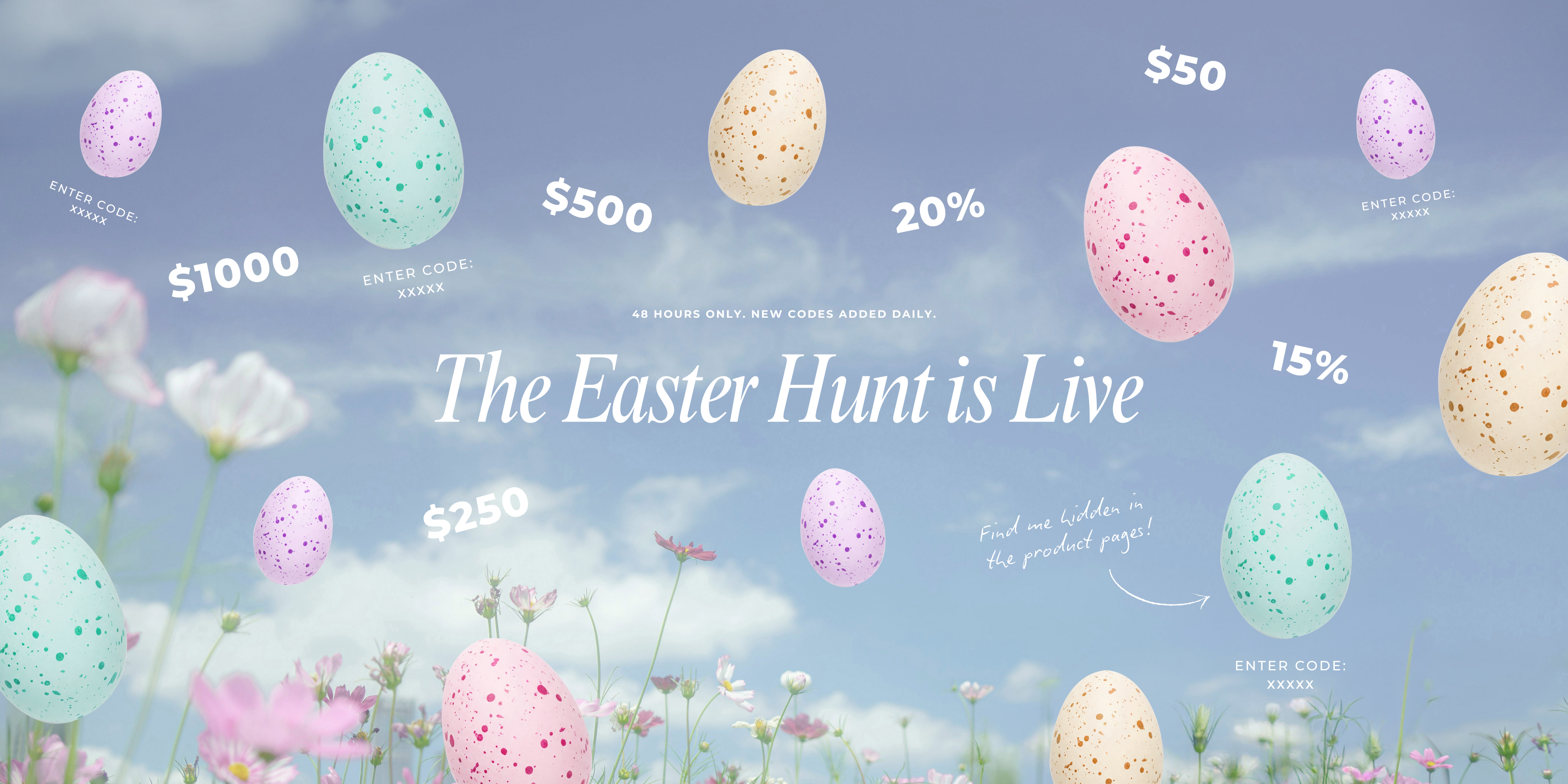 Hunt for hidden eggs across our website and unlock surprise discounts, but only for 48 hours.
