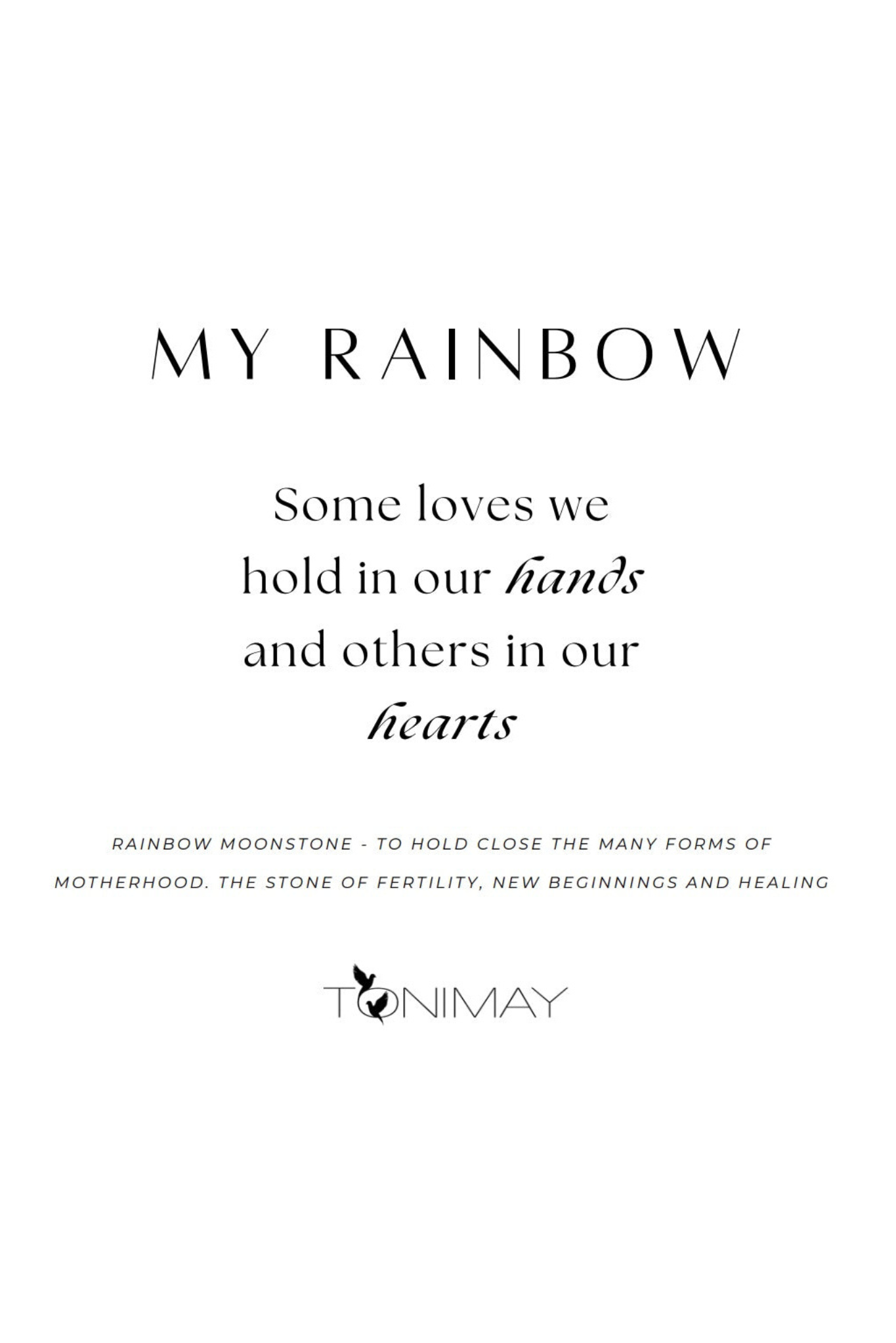 Last year we released a deeply special necklace My Rainbow. My Rainbow is a symbolic piece to hold close the many forms of motherhood. Honouring our rainbow babies, rainbow mothers and rainbow families. The children we hold in our hands and the ones who live forever in our hearts