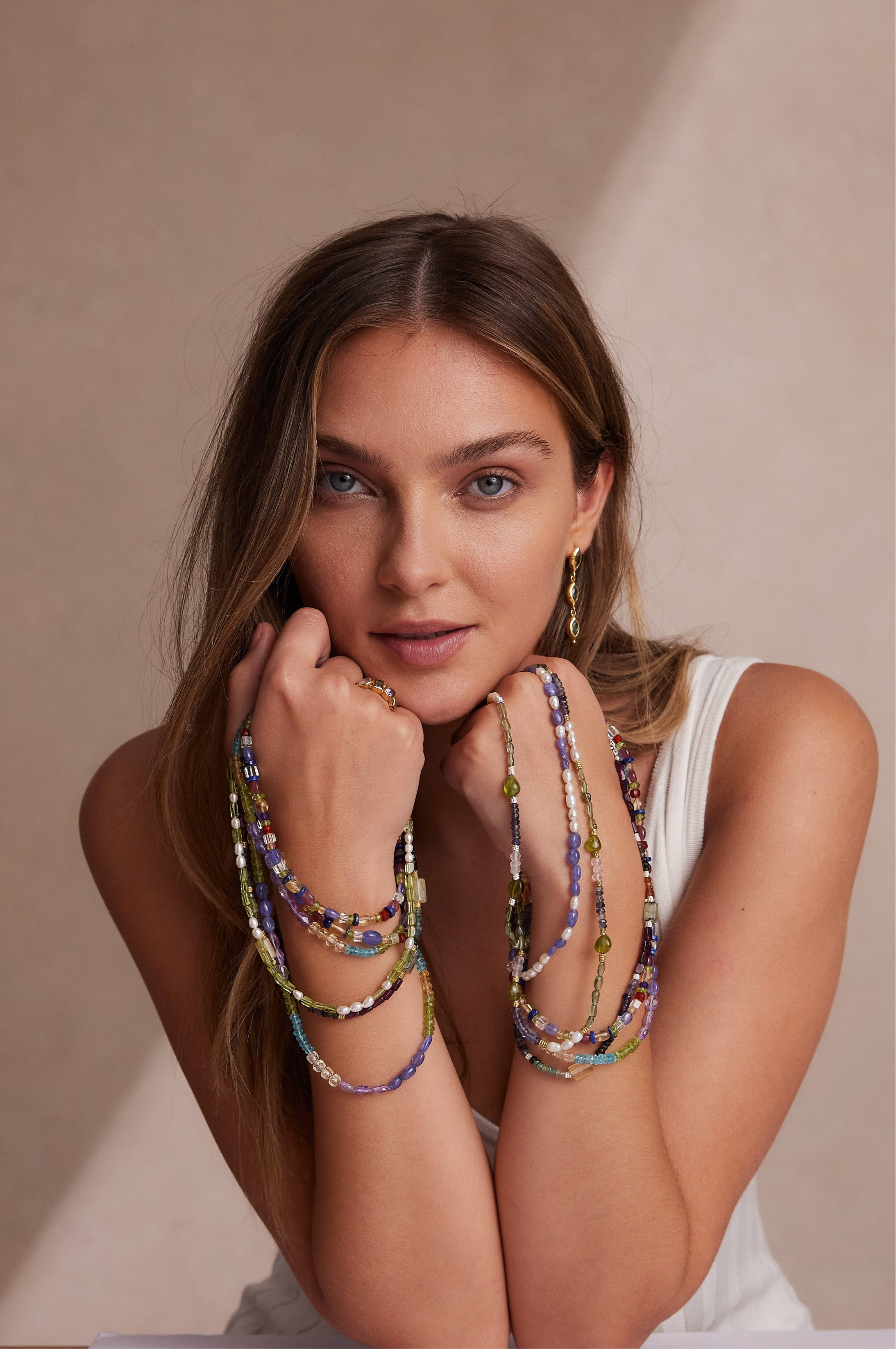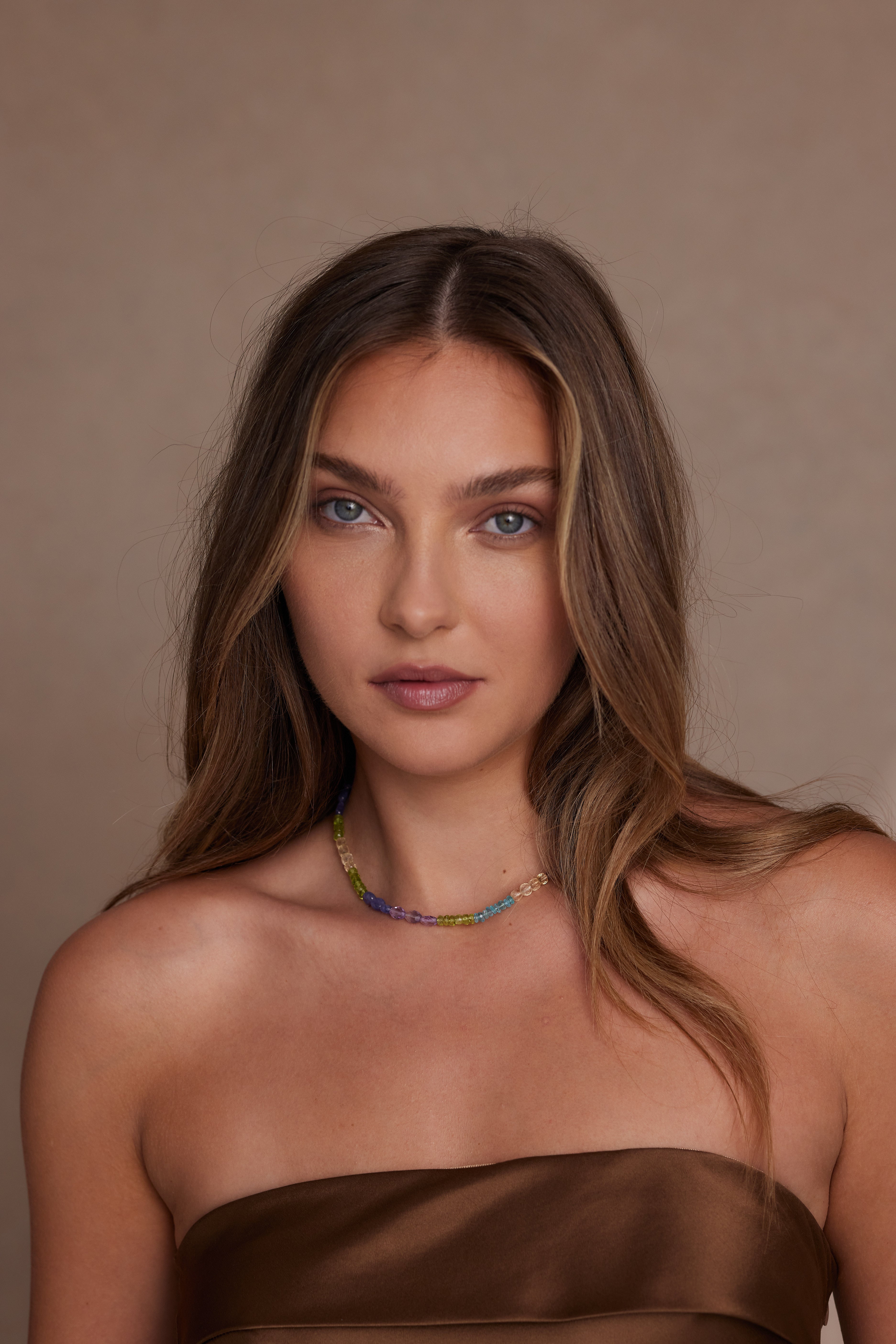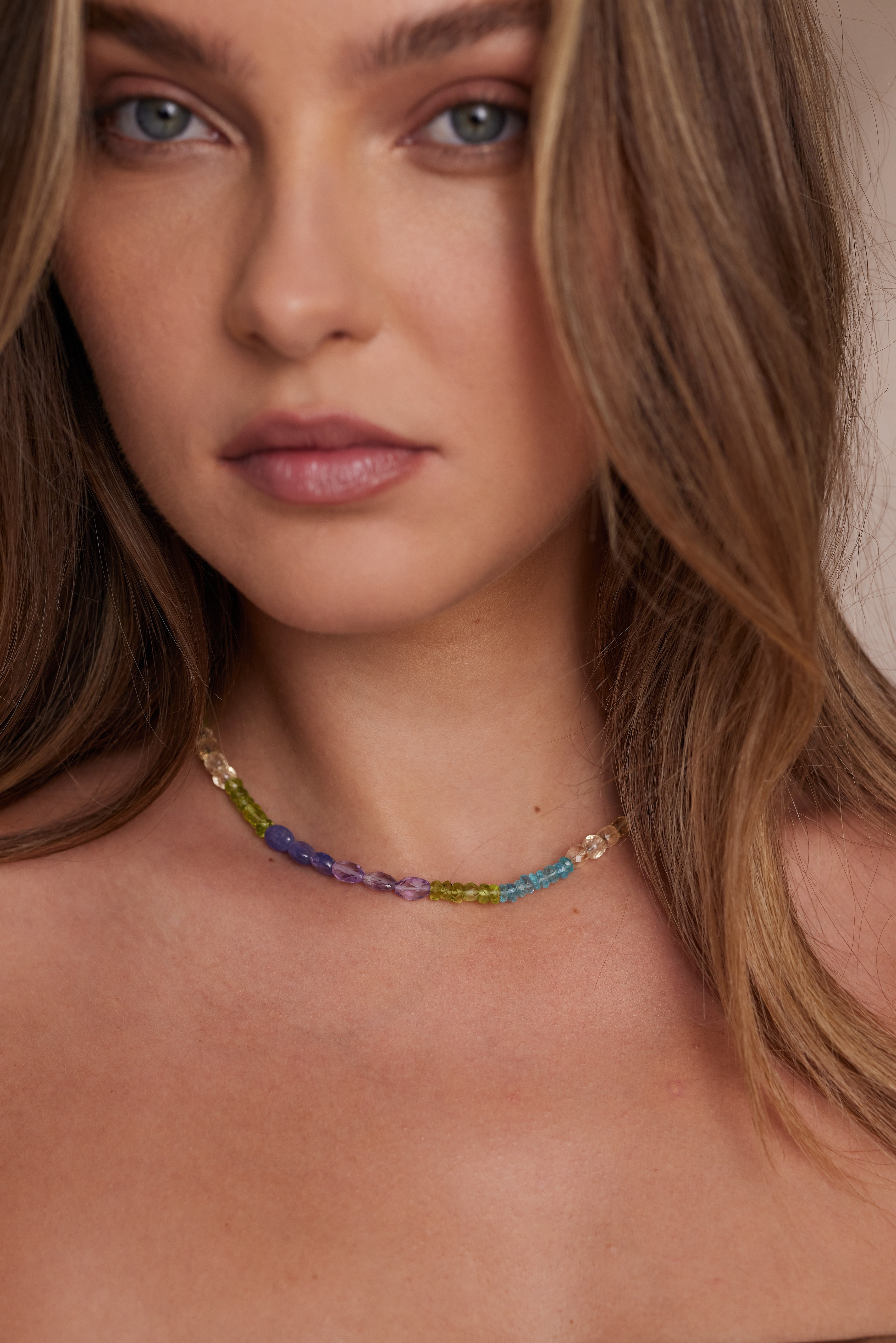 Theia Tourmaline & Sunstone Gold Beaded Necklace