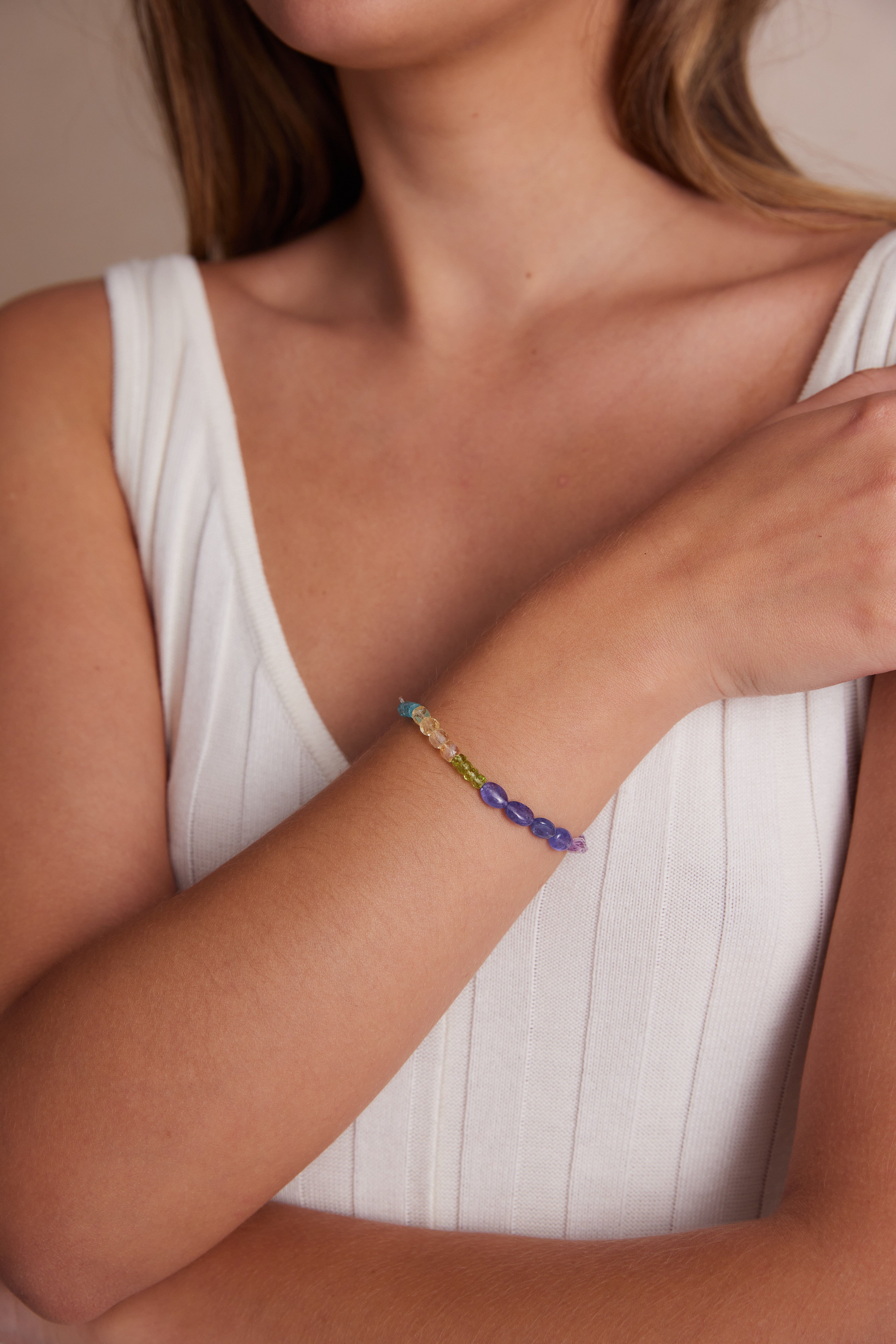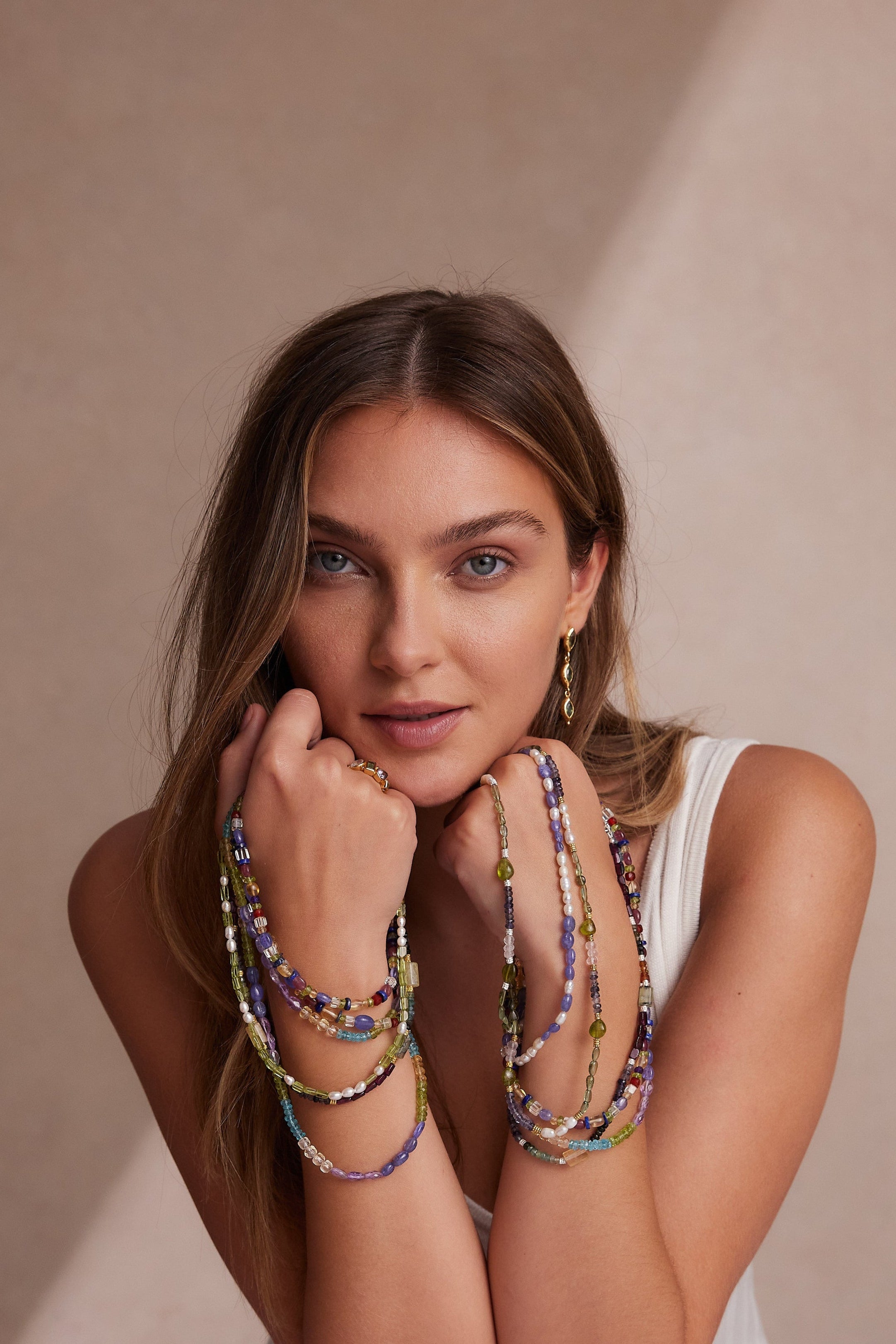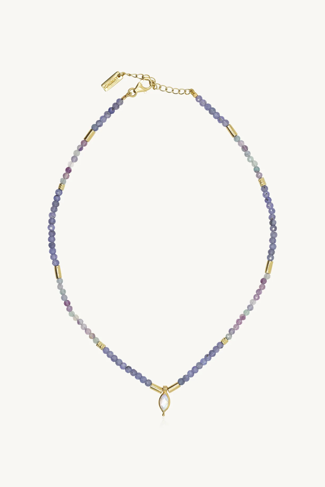 Theia Tanzanite & Fluorite Gold Beaded Necklace