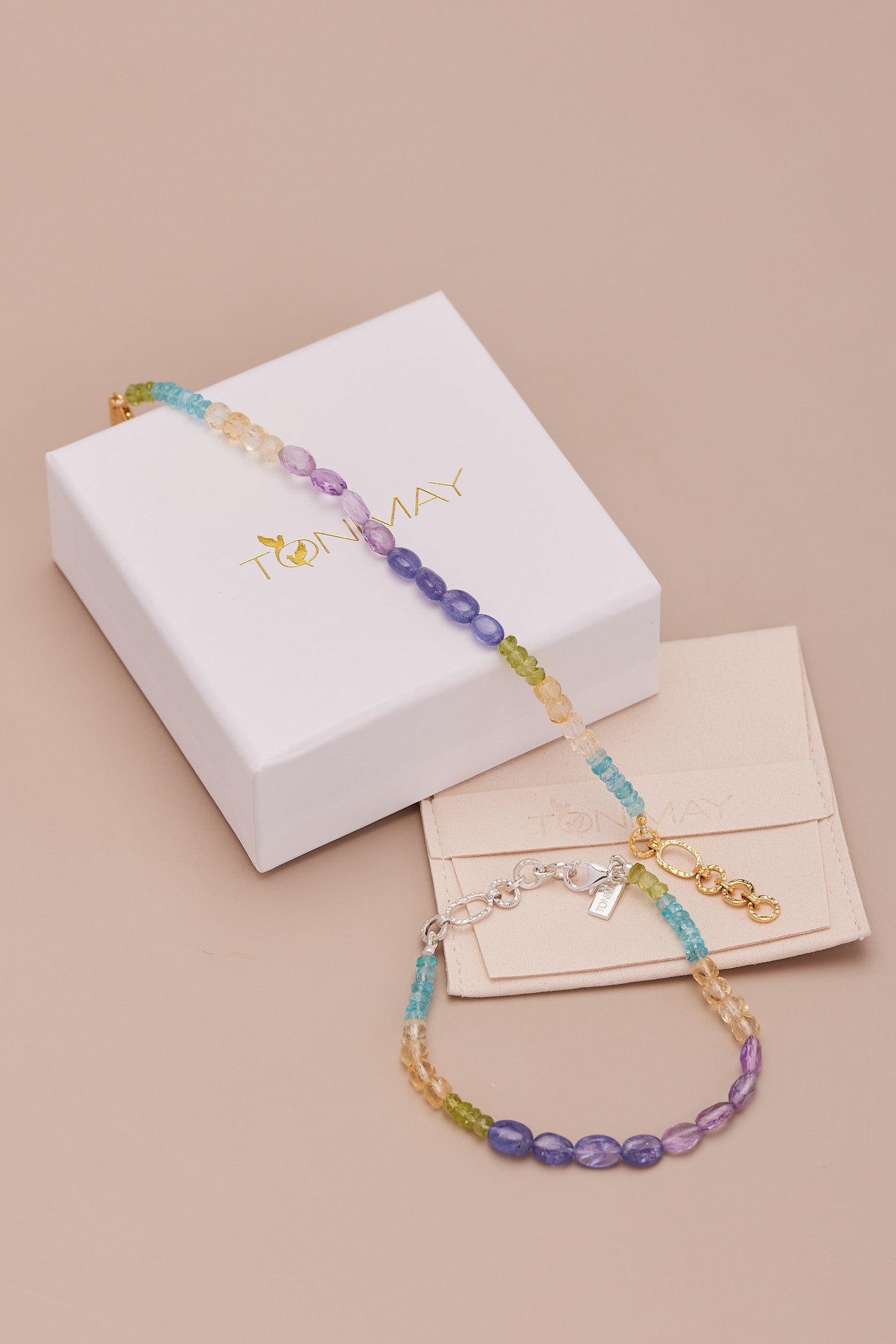 Theia Tourmaline & Sunstone Silver Beaded Necklace