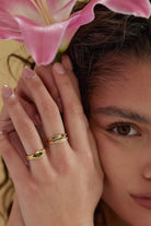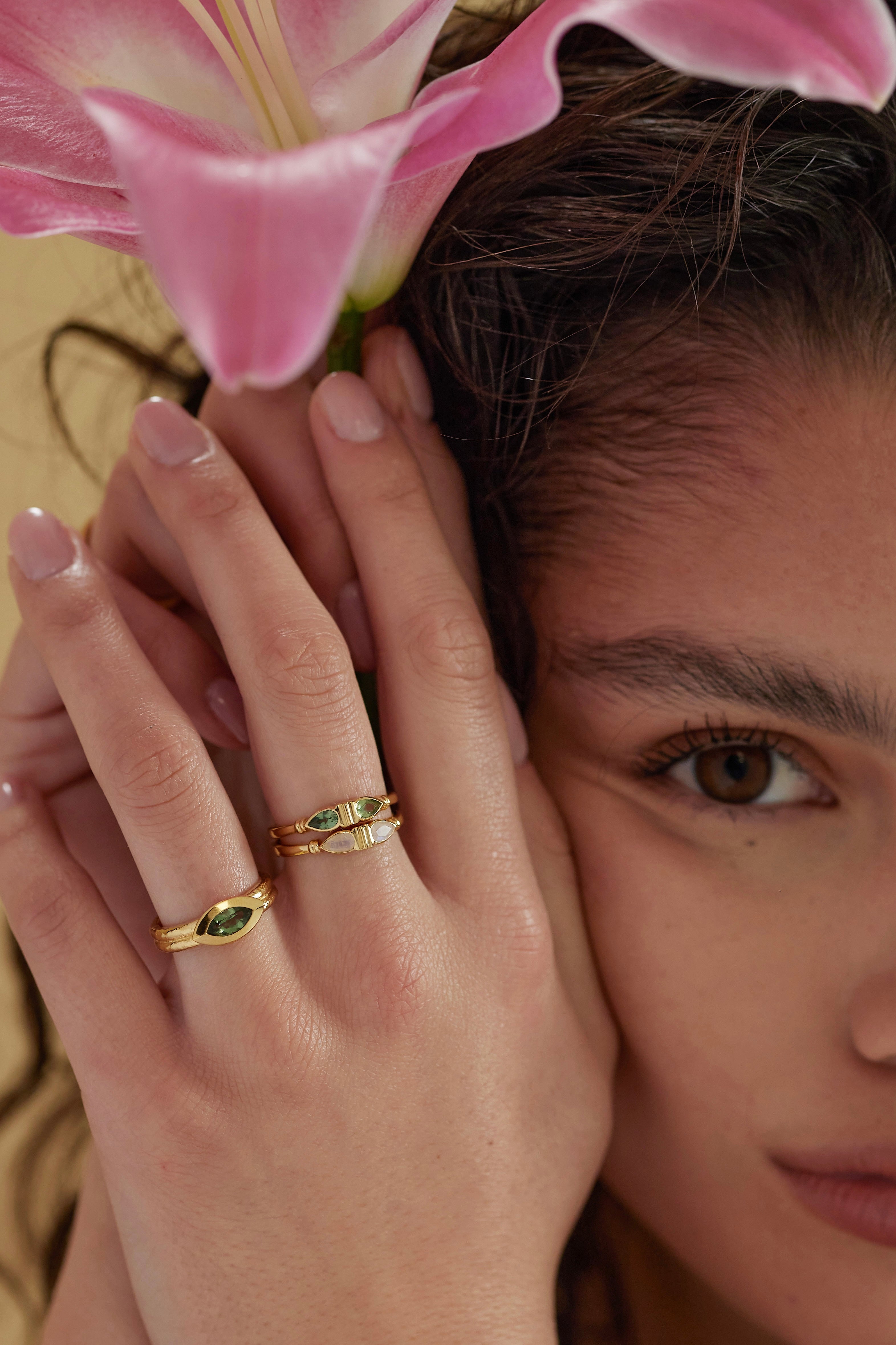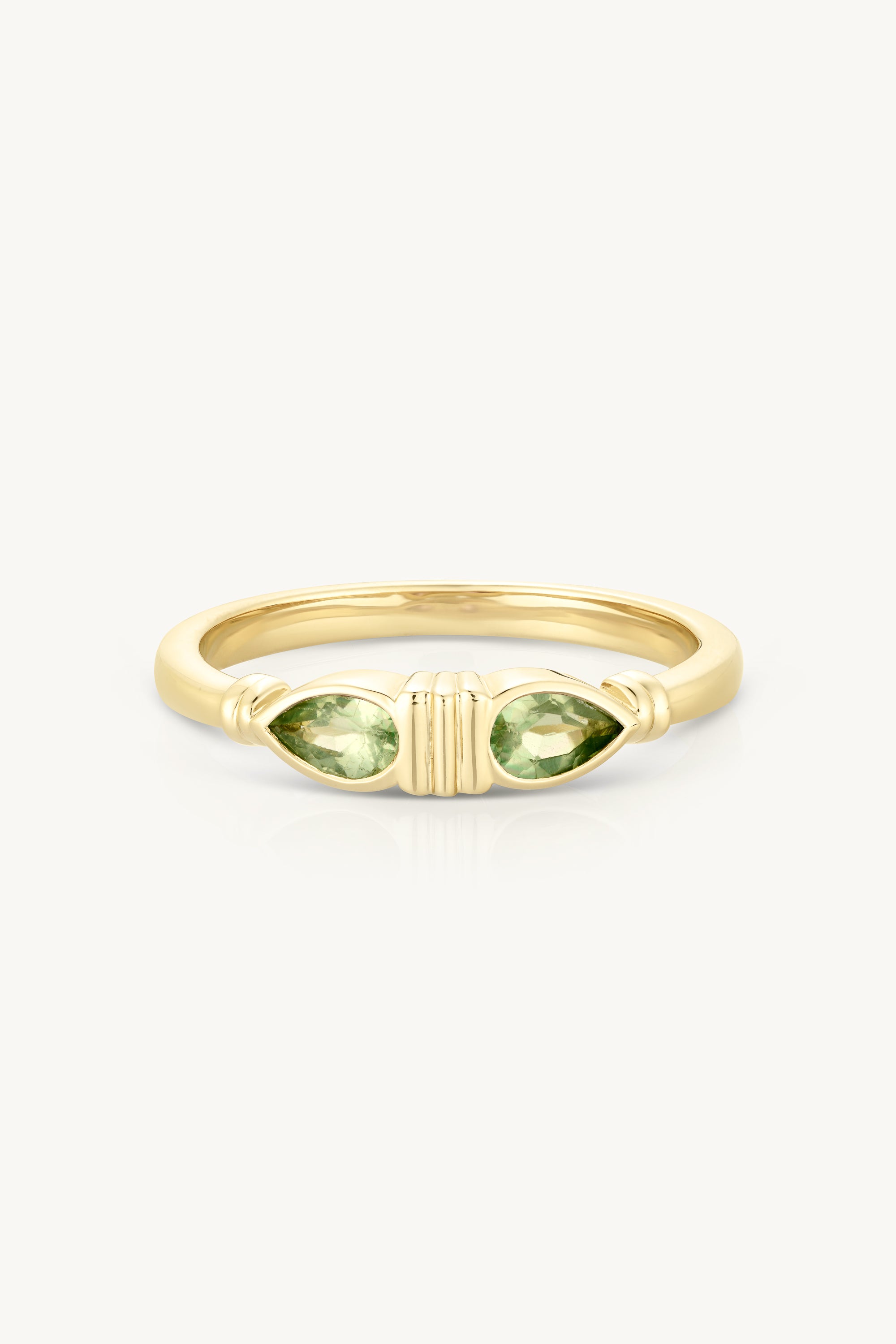 With twin pear-cut Apatites bezel-set at its centre, this ring brings effortless colour and strength to your collection. The two stones are beautifully framed by fine line detailing, adding a touch of texture and dimension between and alongside them.