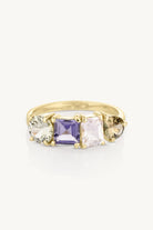 This one-of-a-kind Cluster Ring is designed with a round Green Sapphire, a square Iolite, a square Pink Tourmaline, and a pear Sapphire, arranged to create an effortless sense of balance - a true symbol of love’s individuality.