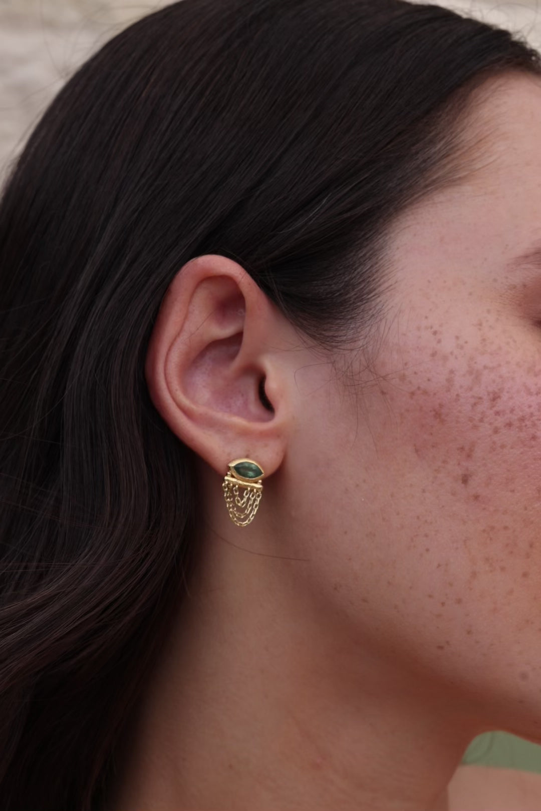 Made to mesmerise, the Nyra Earrings showcase a hand-cut marquise Apatite stone as their striking focal point. Below, three cascading chains of varying lengths create effortless movement.