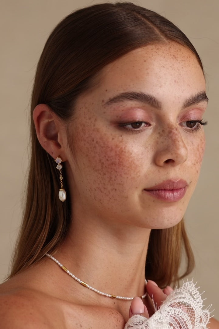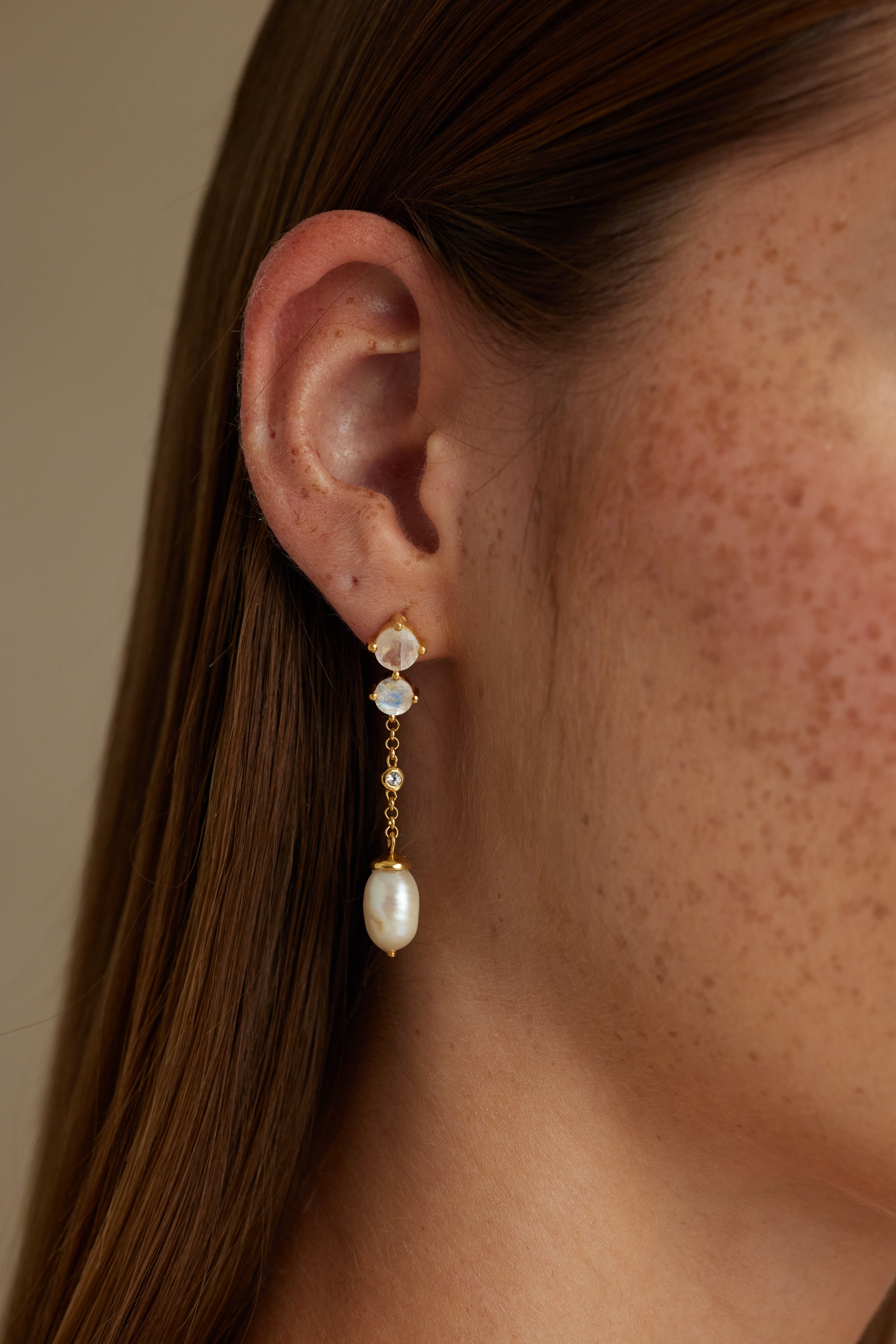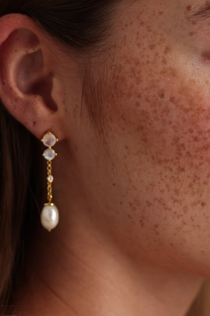 The Pearls and Moonstones in these earrings are natural which does mean that variation is to be expected between each piece. Each Pearl and Moonstone is unique, no two Pearls will be the same. As per the natural beauty of Pearls and Moonstone, slight imperfections, colour variation and textures are to be expected.