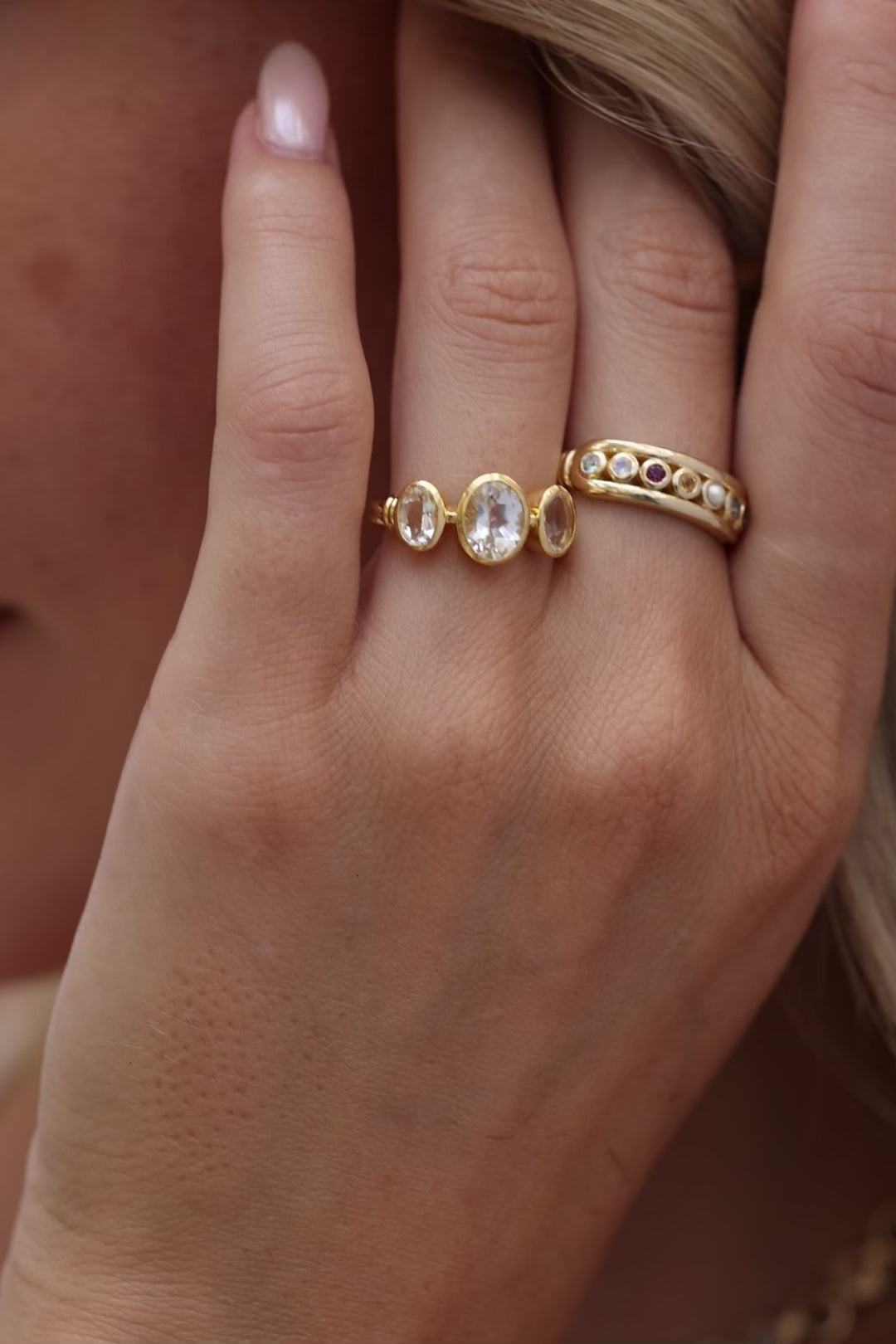 In the Trinity Ring, the stones take centre stage. A striking trio of bezel-set White Topaz come together in perfect balance. It’s a design that lets the stones speak for themselves, effortlessly ready to stand out.