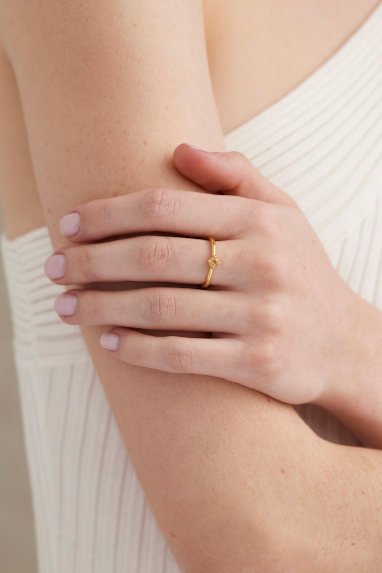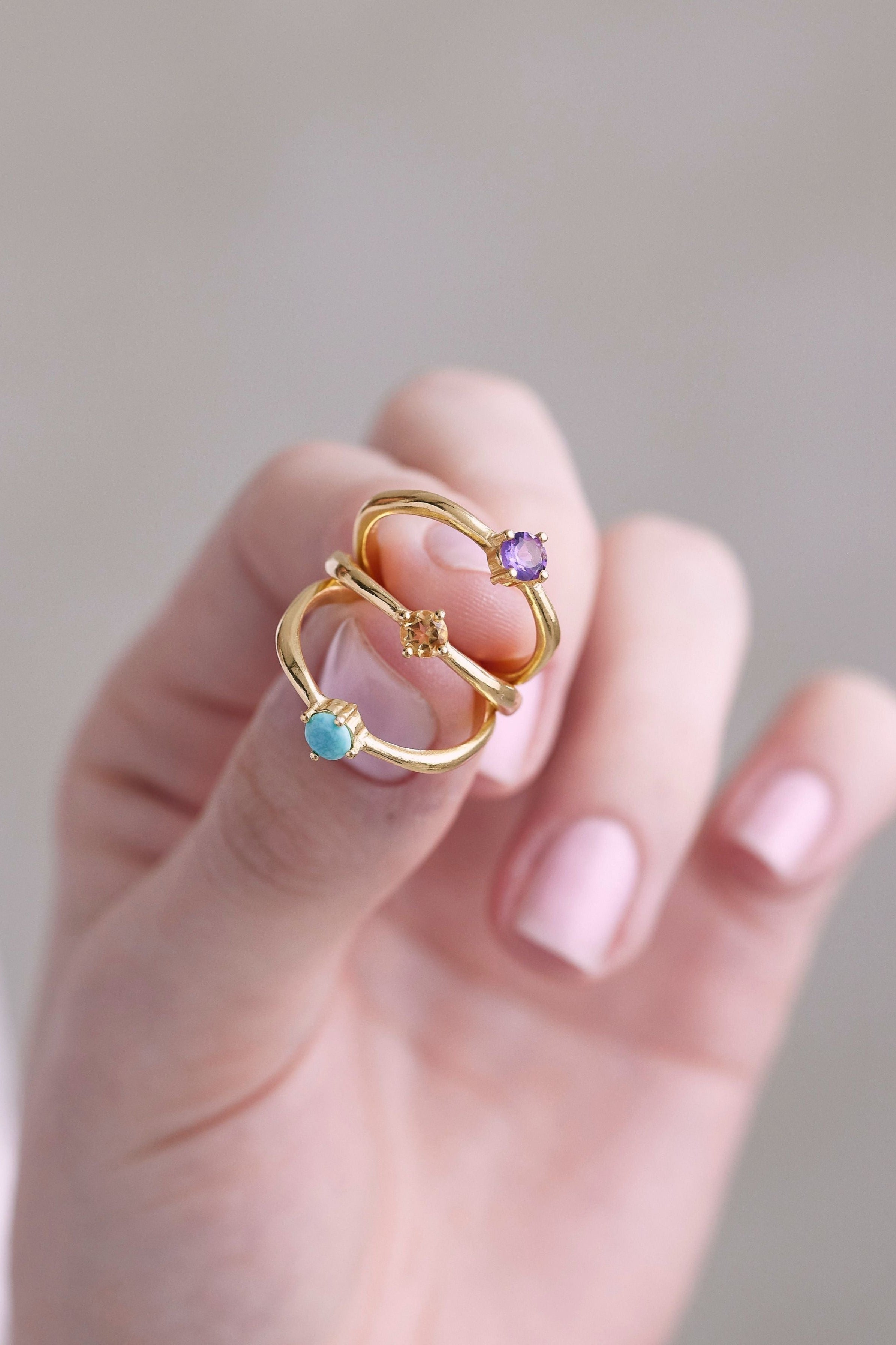 Our beautiful birthstone rings have been handmade in sterling silver with 18K gold plating. Set with a stunning 4.5mm stone in an organic ring band.