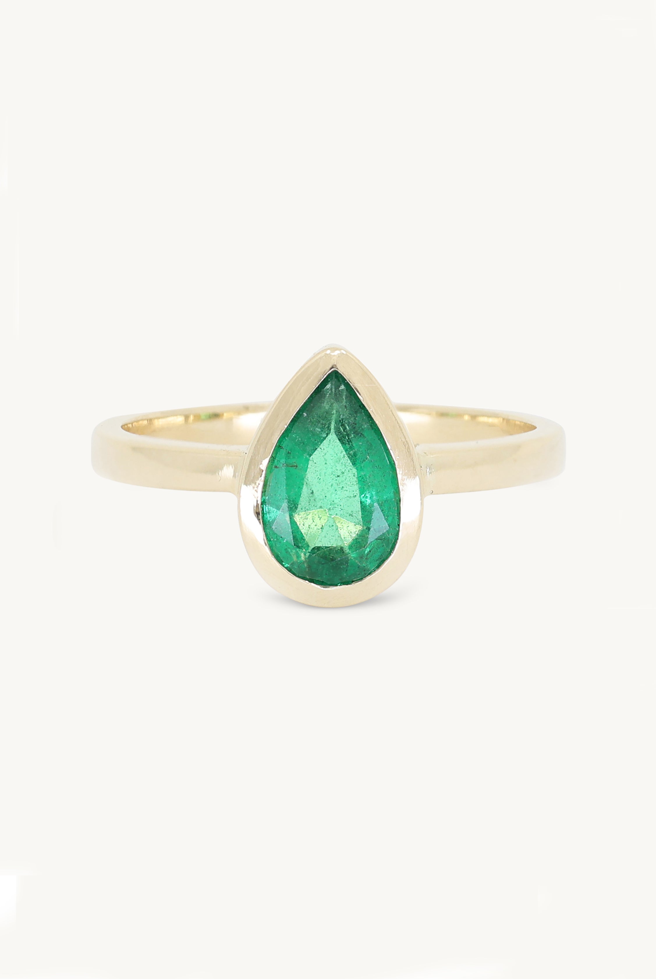 This hand crafted finery piece features a stunning green coloured baguette cut 1.1ct Australian Parti Sapphire stone. The Sapphire is bezel set in 14K Yellow Gold with two accent brilliant white diamonds.