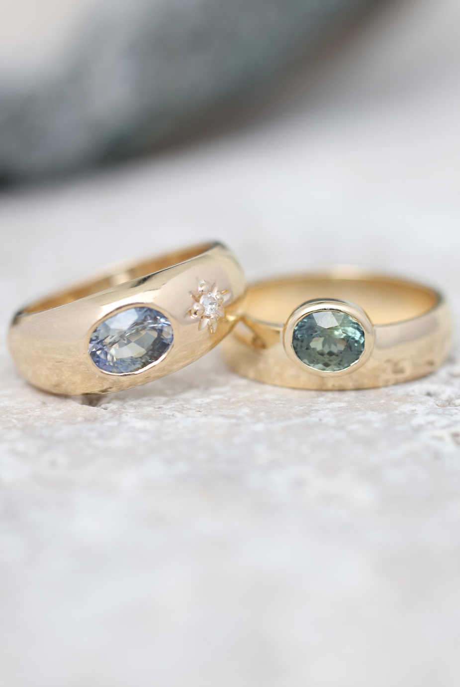 We love creating one of a kind, unique and timeless pieces whether it be for an engagement, celebration or heirloom piece. Although all our bespoke pieces available to purchase through the website are custom made to order, we also offer a custom bespoke process where we are able to work individually with a customer bring to life their ideal piece. This involves working with our designer and team to create a unique design, custom source stones, and incorporating other individual details such as hand stamping.