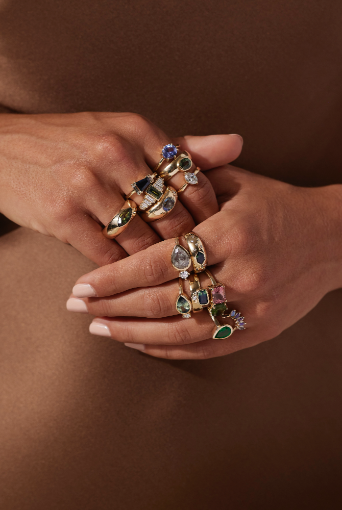 We work with a number of suppliers both locally and globally who specialise in sourcing unique and stunning semi precious and precious stones for our pieces. We strive to work with suppliers who source their stones ethically and sustainably and as a result we do avoid working with larger traditional white diamonds which are often the source of conflict.