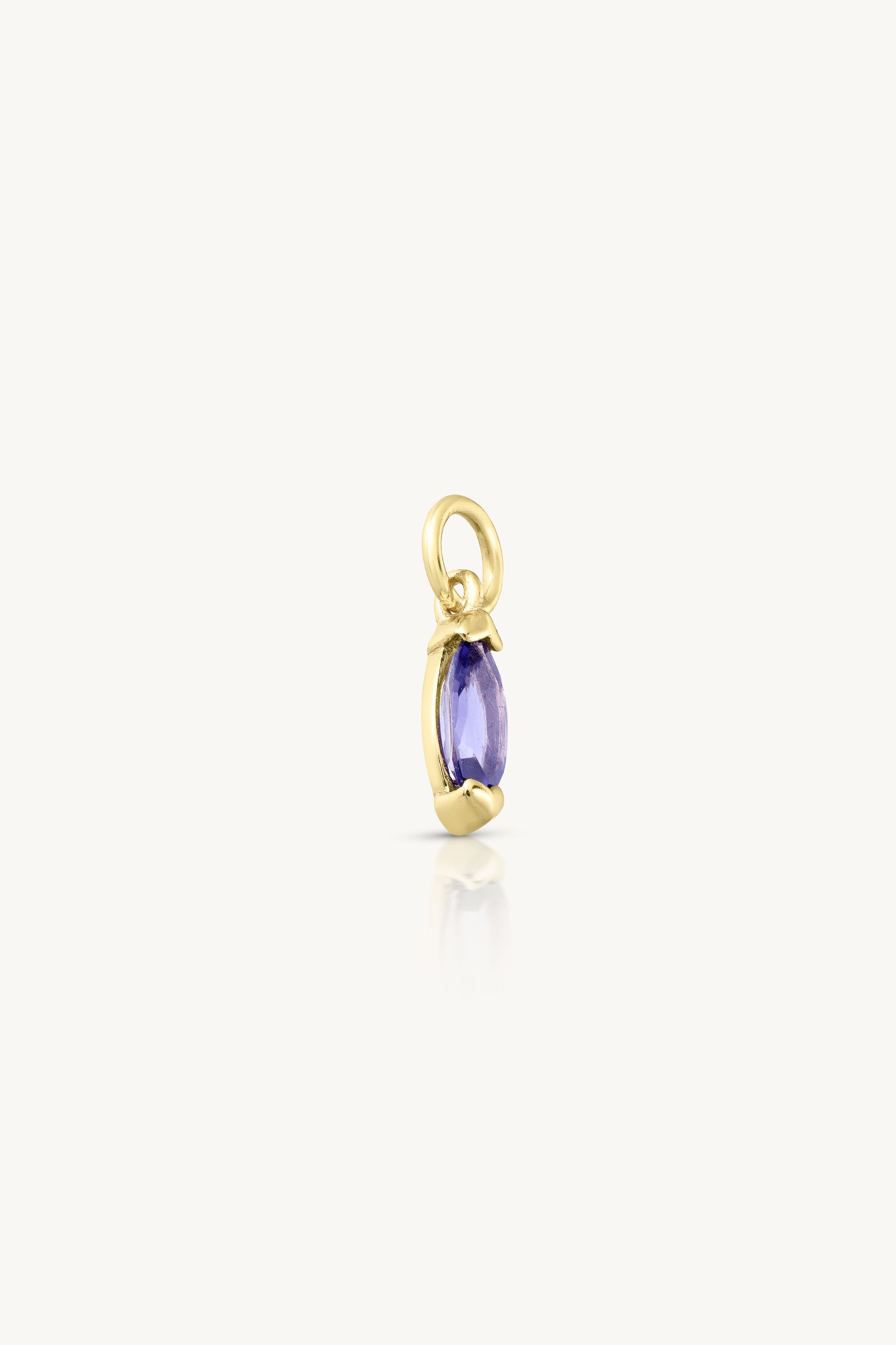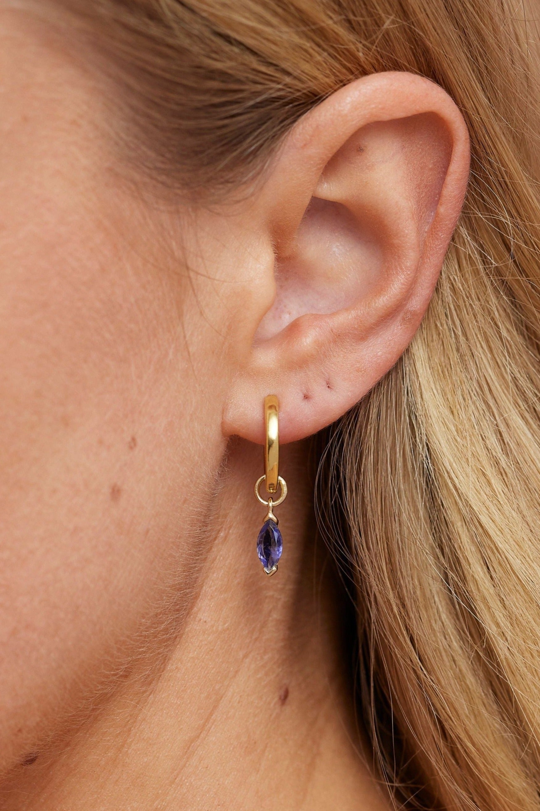 The Marquise Earring Charm is available in 4 stone options with Apatite, Moonstone, Iolite and Rhodolite.