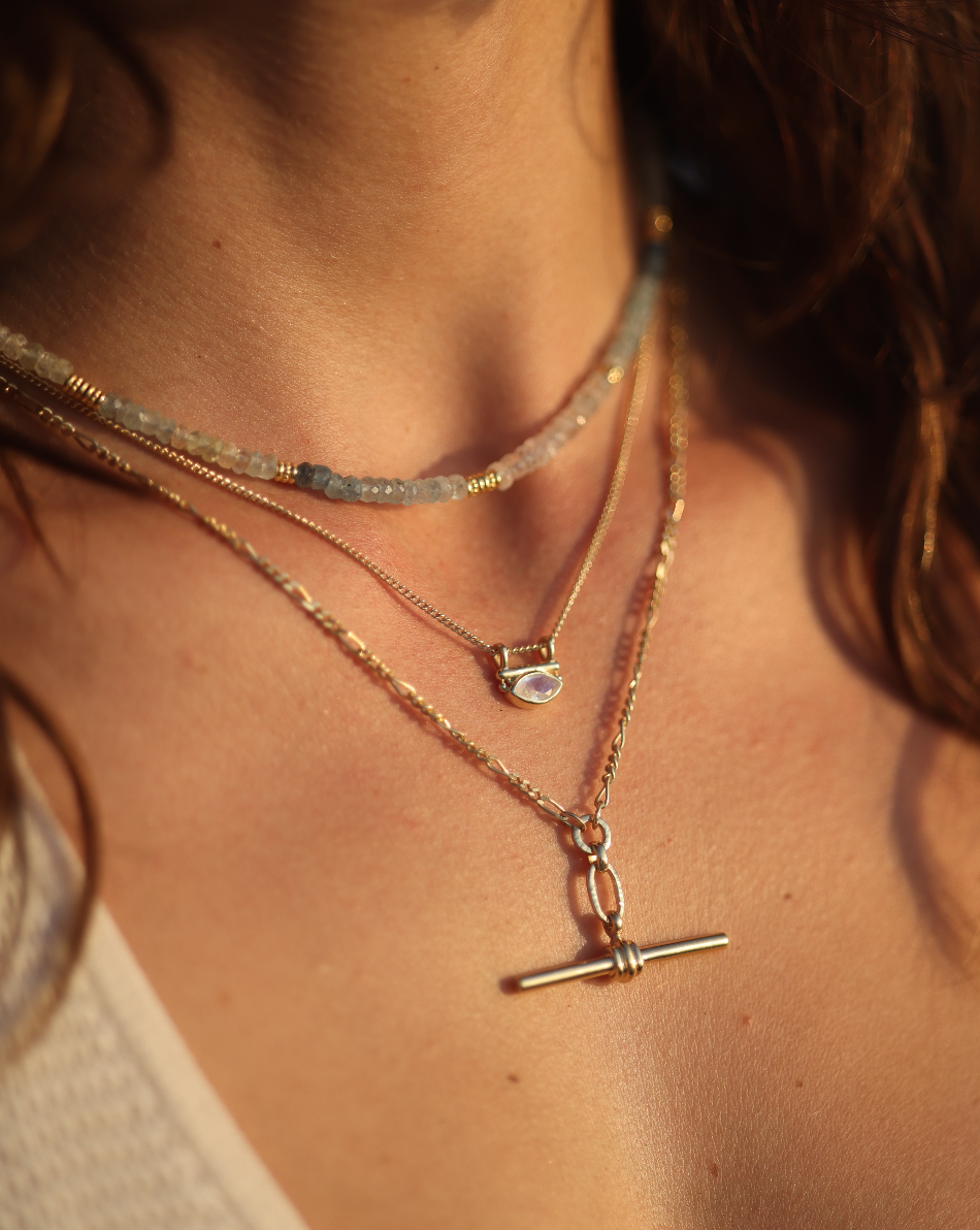 If you are looking to layer your ToniMay necklaces, particularly if you have styles where chain lengths are the same we recommend getting your hands on one of our chain extenders which will allow you to mix and match your chain lengths for layering. Our chain extenders can be used with all lobster clasp chains however are not able to be used with our toggle clasp necklaces such as the Herkimer, Alchemy or Lost Pearl necklaces.