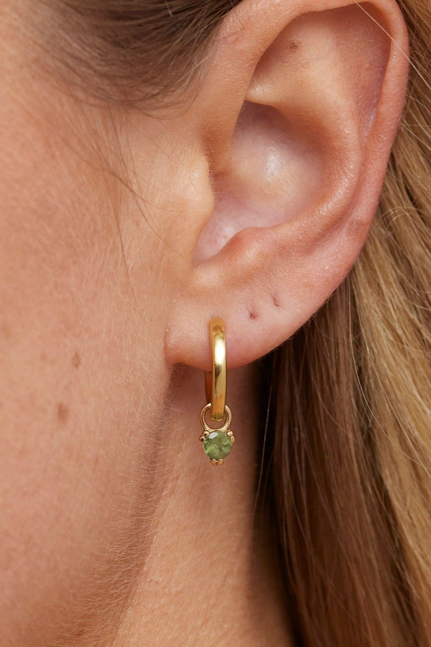 The Orb Earring Charm is available in 5 stone options with Apatite, Moonstone, Iolite, Rhodolite and Turquoise.