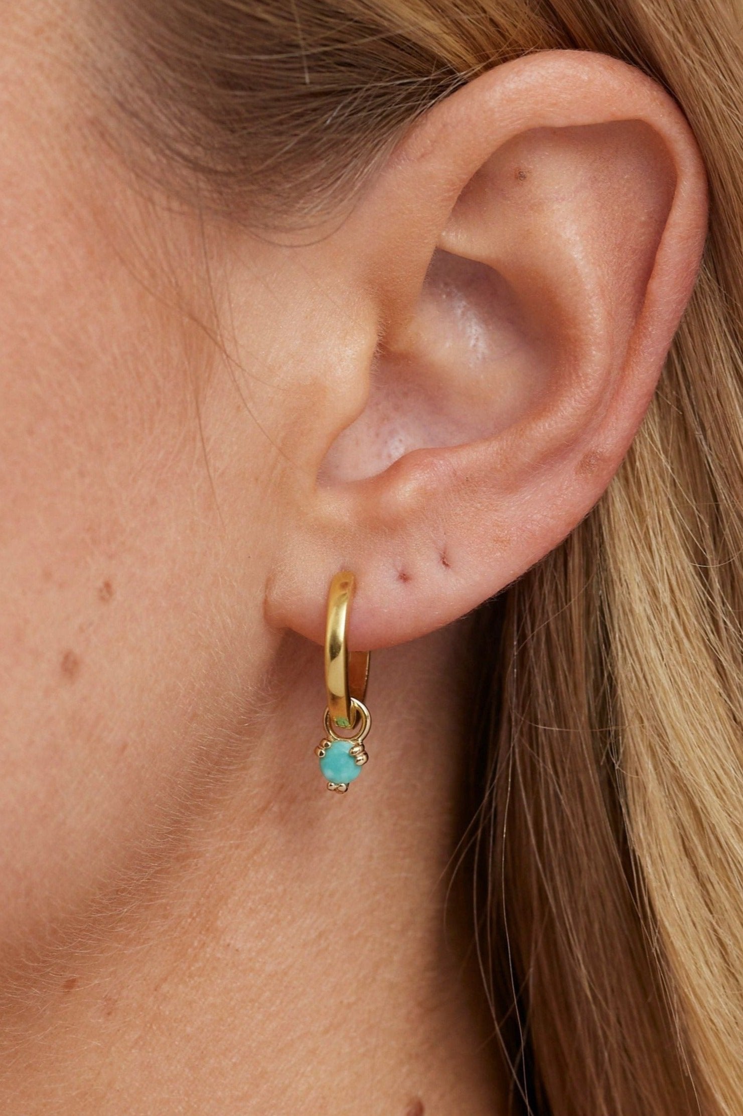 The Orb Earring Charm is available in 5 stone options with Apatite, Moonstone, Iolite, Rhodolite and Turquoise.