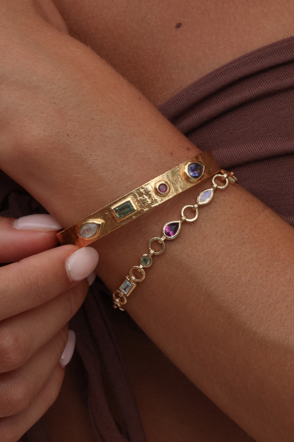 Adorn your wrist with our collection of unique cuffs, bracelets and chains. Statement semi-precious stones are set in luxe sterling silver and gold plating. Elevate your look and curate your own arm stack.