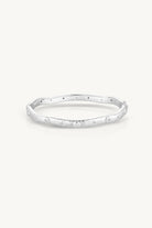 Starburst motifs with glowing White Topaz twinkle along the entire bangle, creating a shimmering constellation around your wrist. The bangle’s close-fitting shape and secure push clasp with an additional latch make it as reliable as it is stunning.