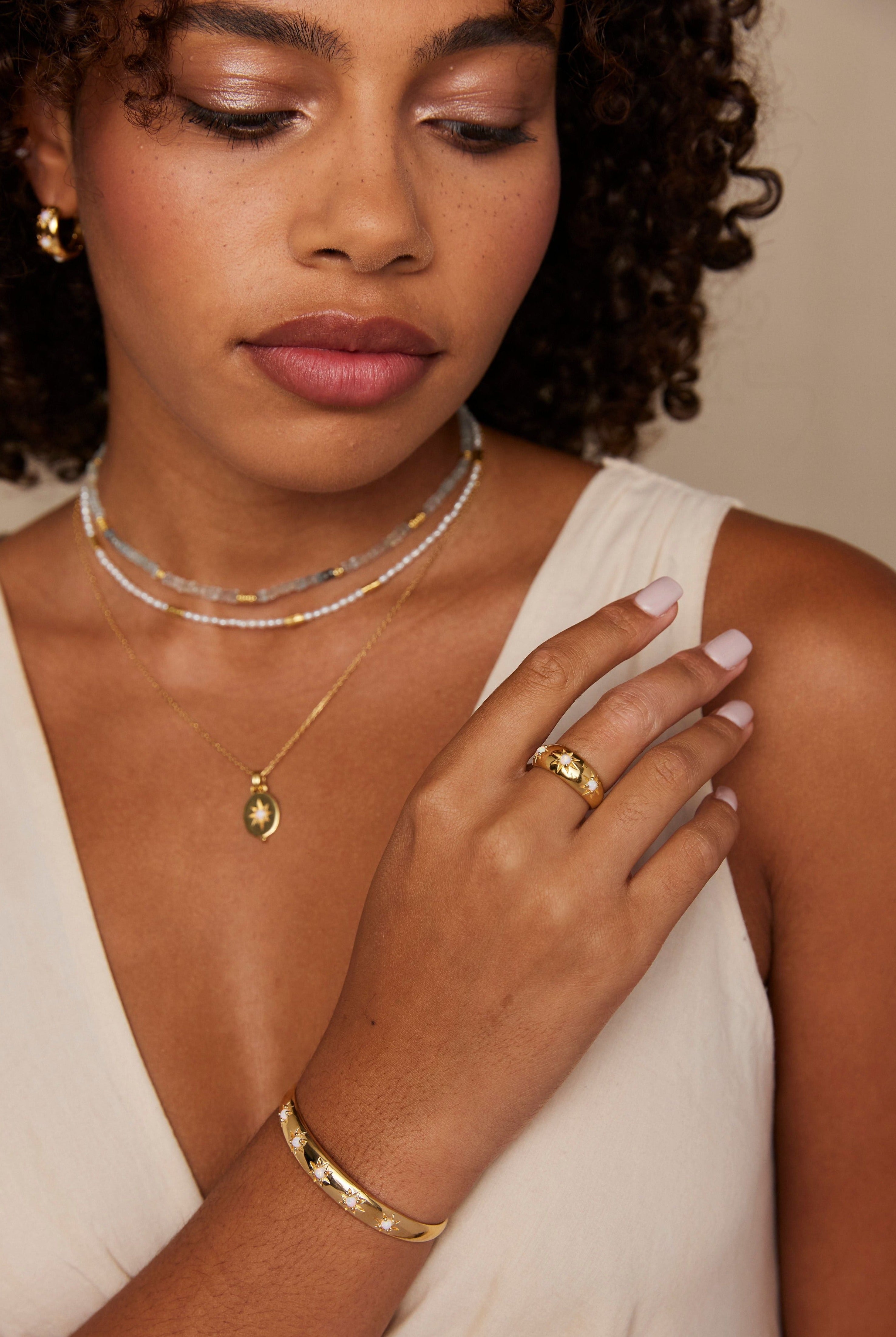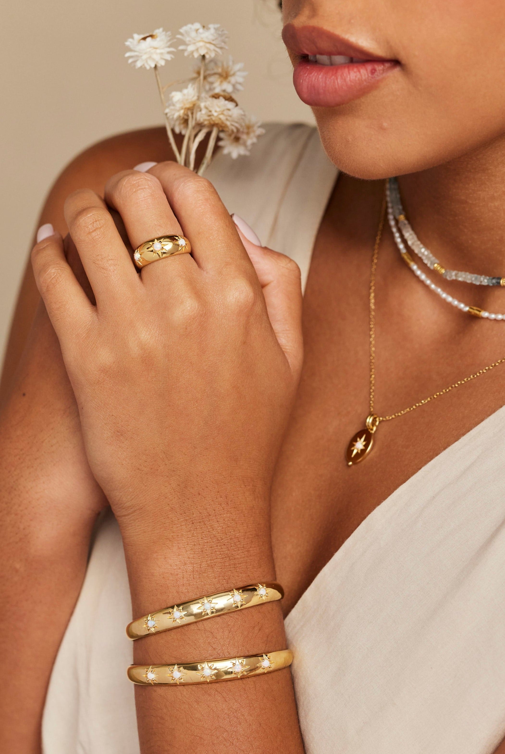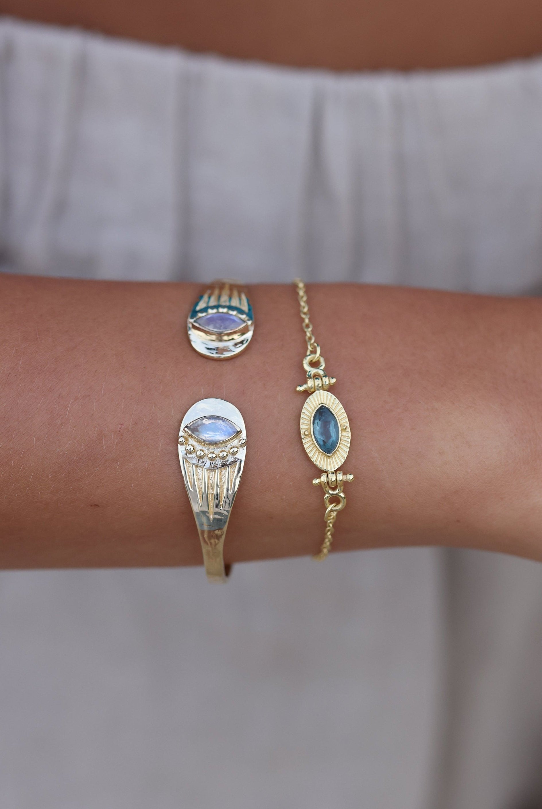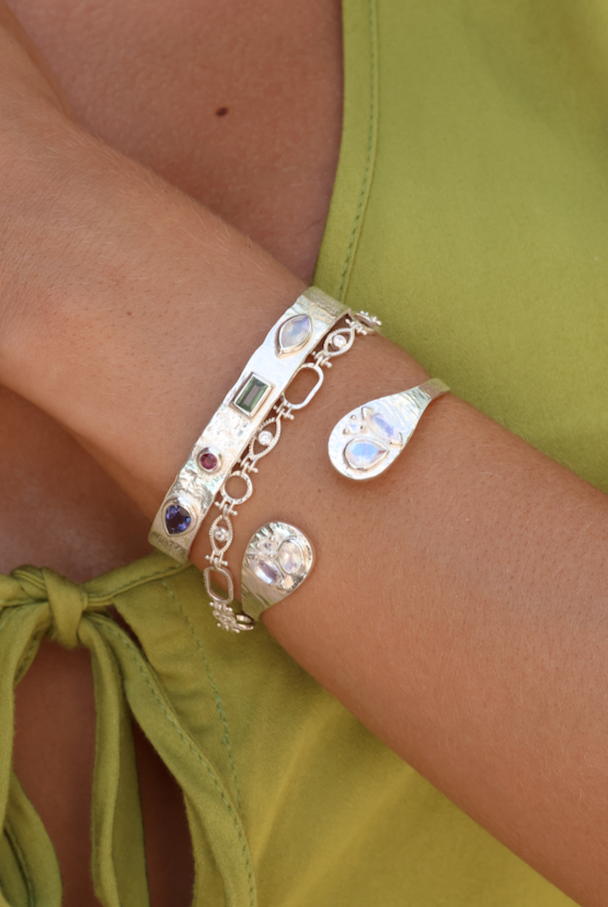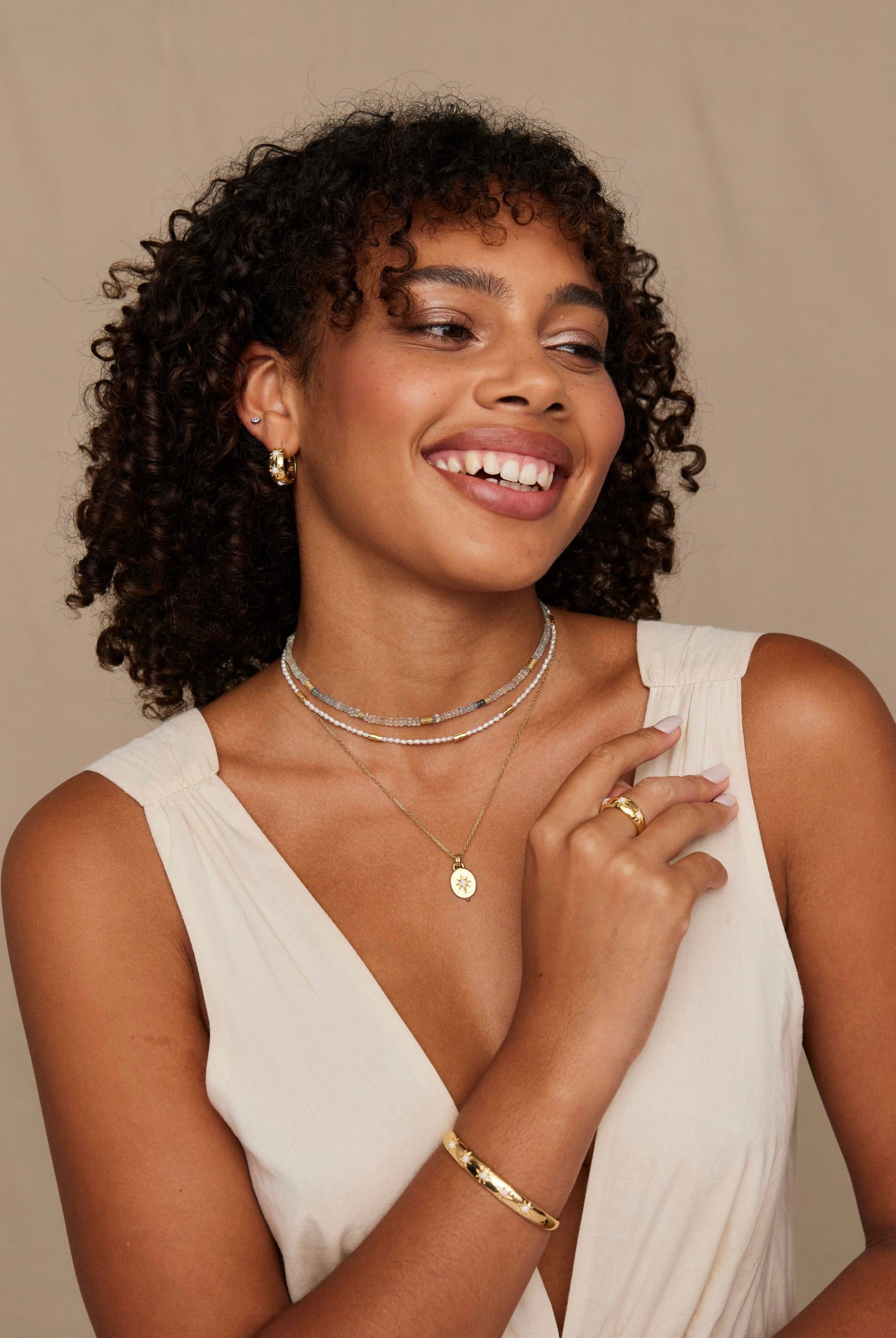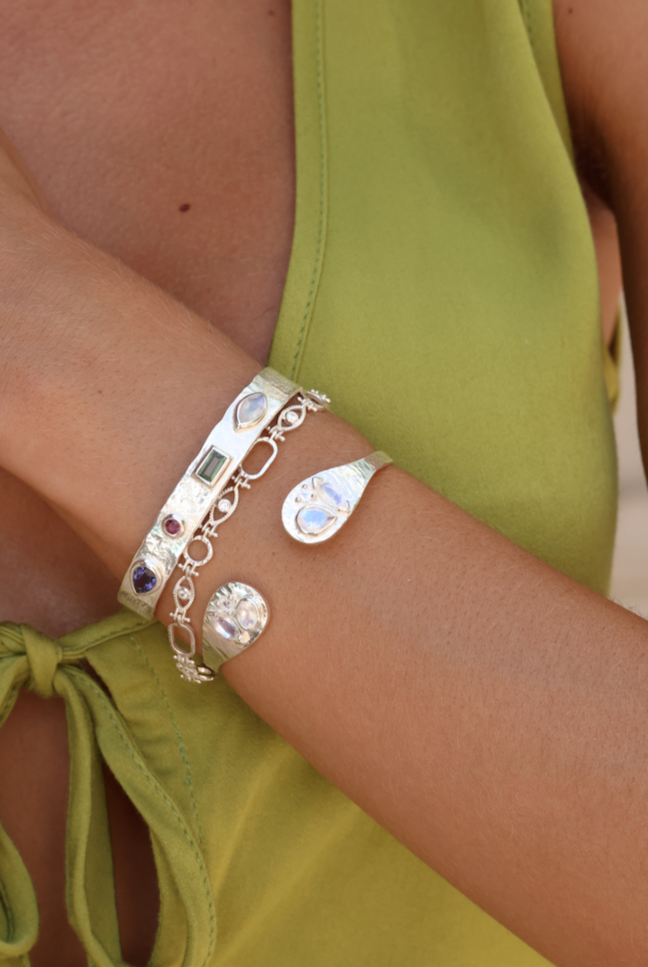 Adorn your wrist with our collection of unique cuffs, bracelets and chains. Statement semi-precious stones are set in luxe sterling silver and gold plating. Elevate your look and curate your own arm stack.