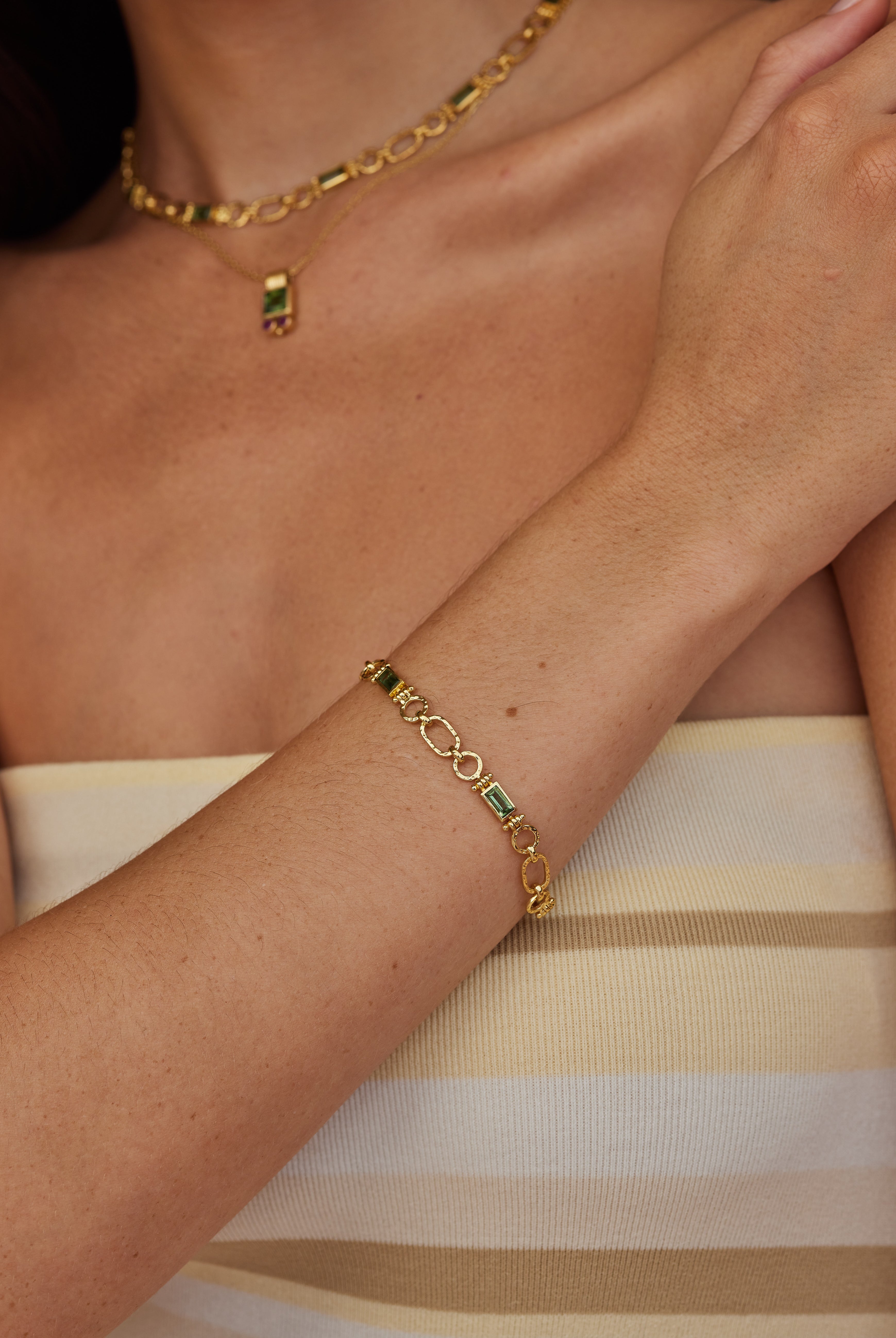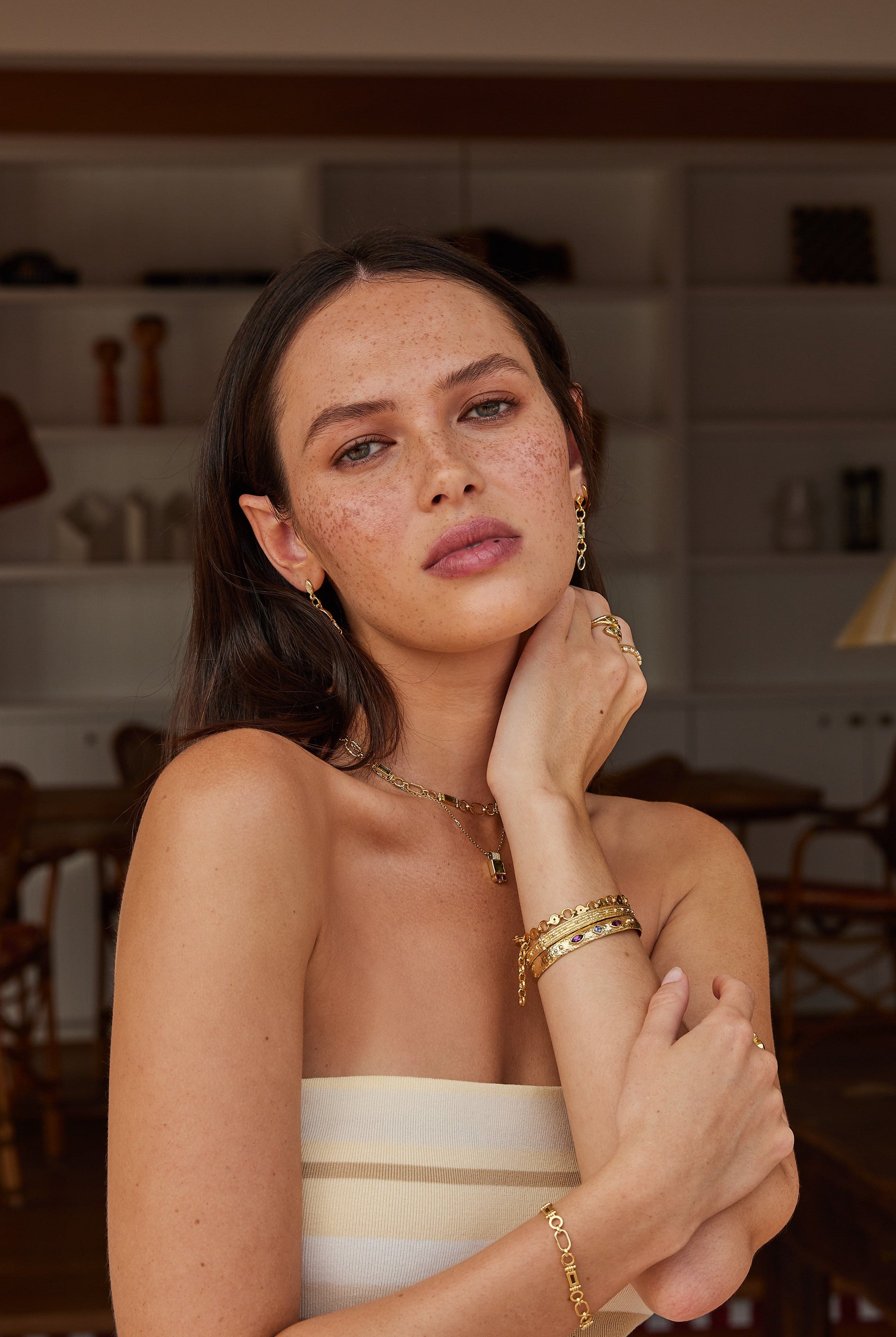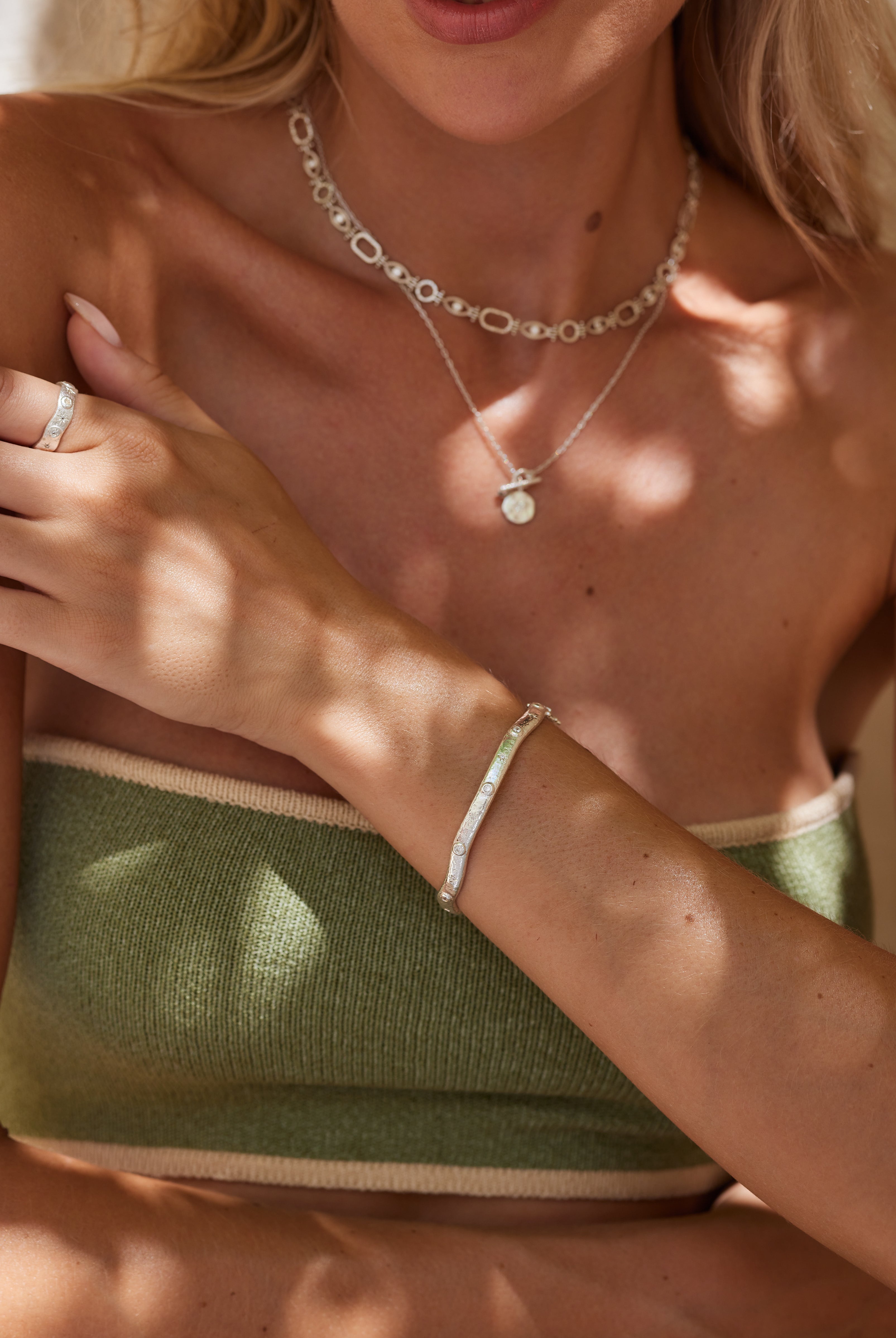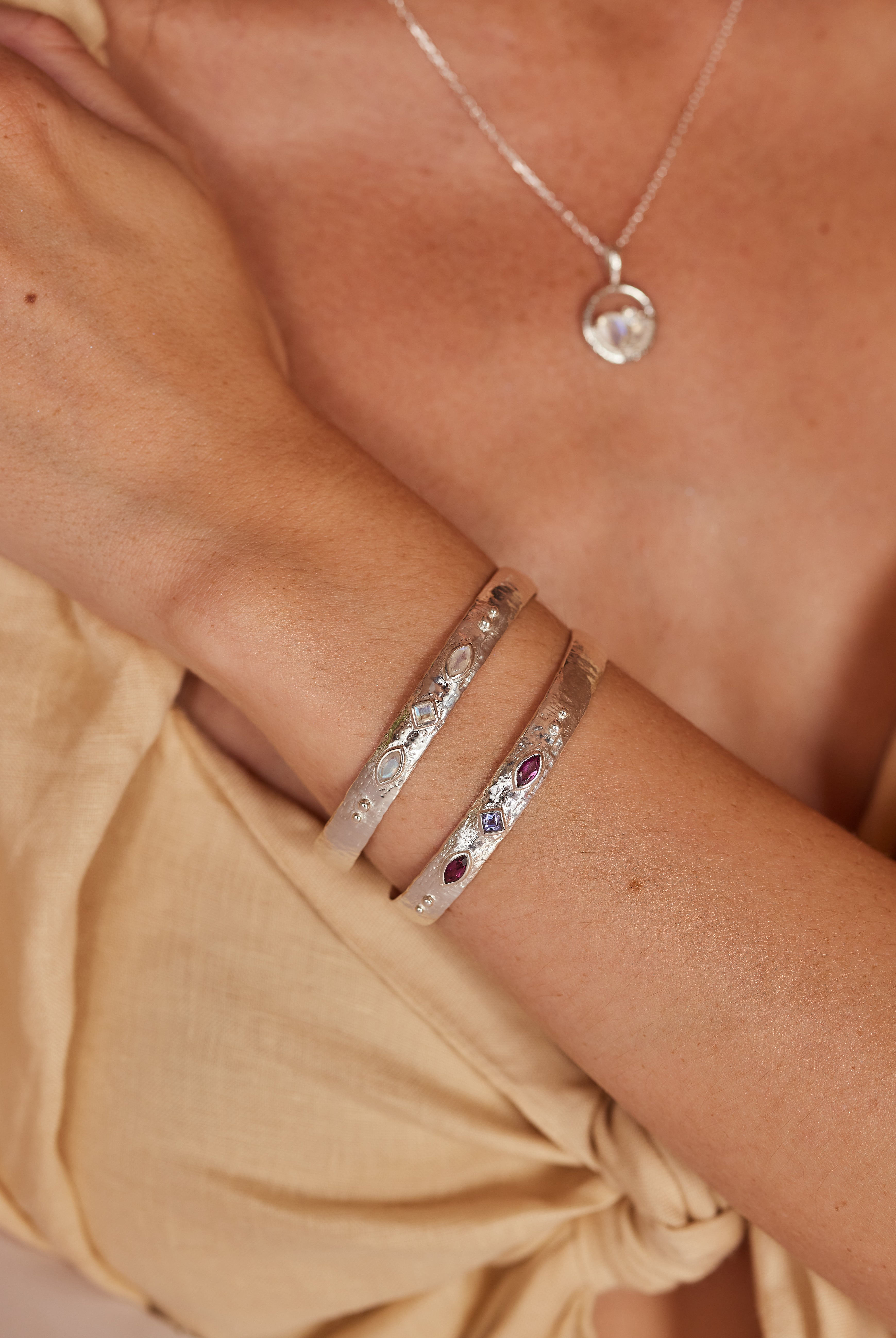 Adorn your wrist with our collection of unique cuffs, bracelets and chains. Statement semi-precious stones are set in luxe sterling silver and gold plating. Elevate your look and curate your own arm stack.
