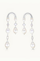 These breathtaking pearl earrings feature 5 freshwater pearls suspended between natural hand cut moonstones in a layered waterfall that cascades from the silver arch that sits against the ear.