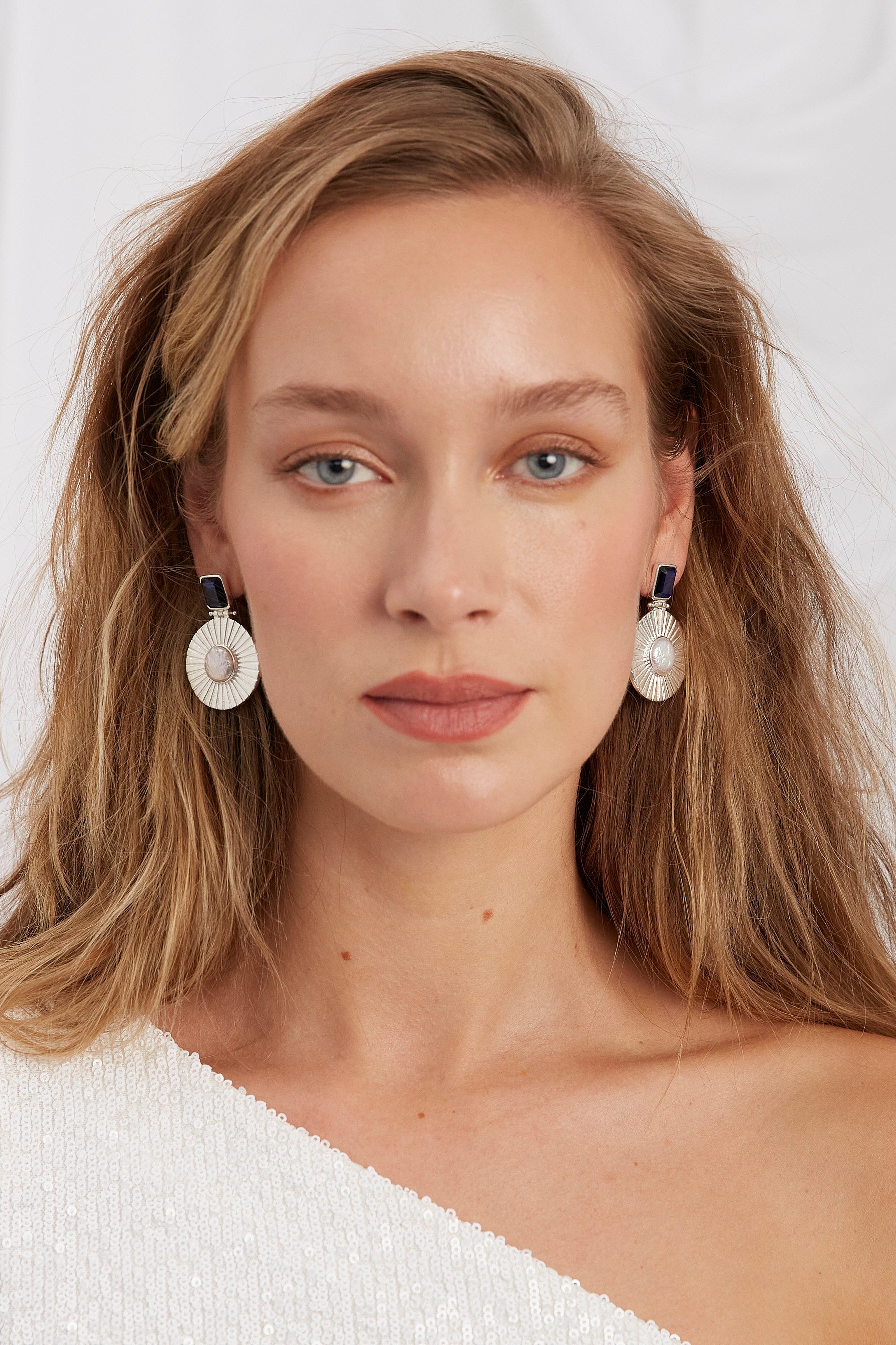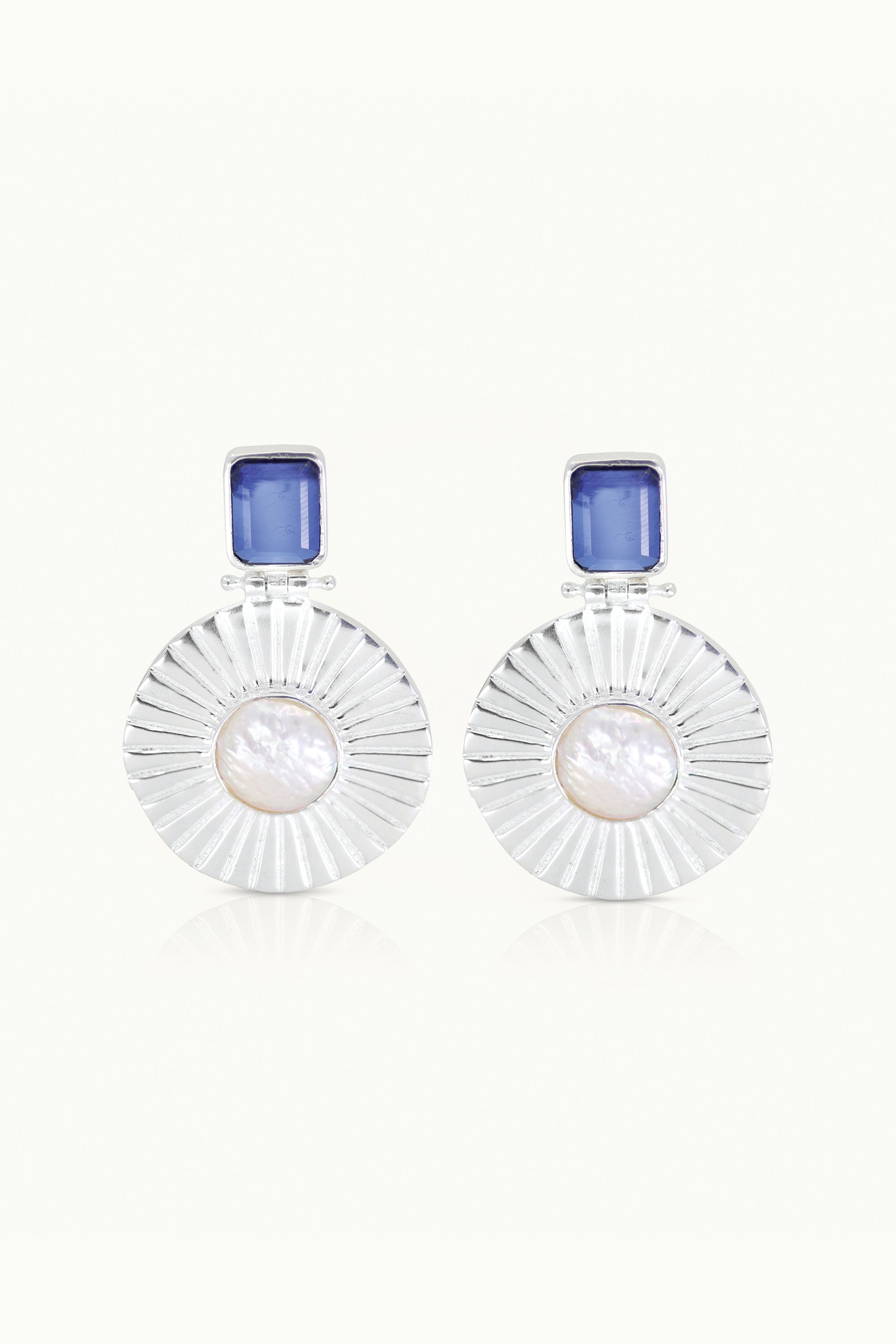 Our Lucille Earrings are the perfect statement earring for your special occasion or that something blue for your big day! Set with a luminous lab made Sapphire and natural pearl they are bound to turn heads.