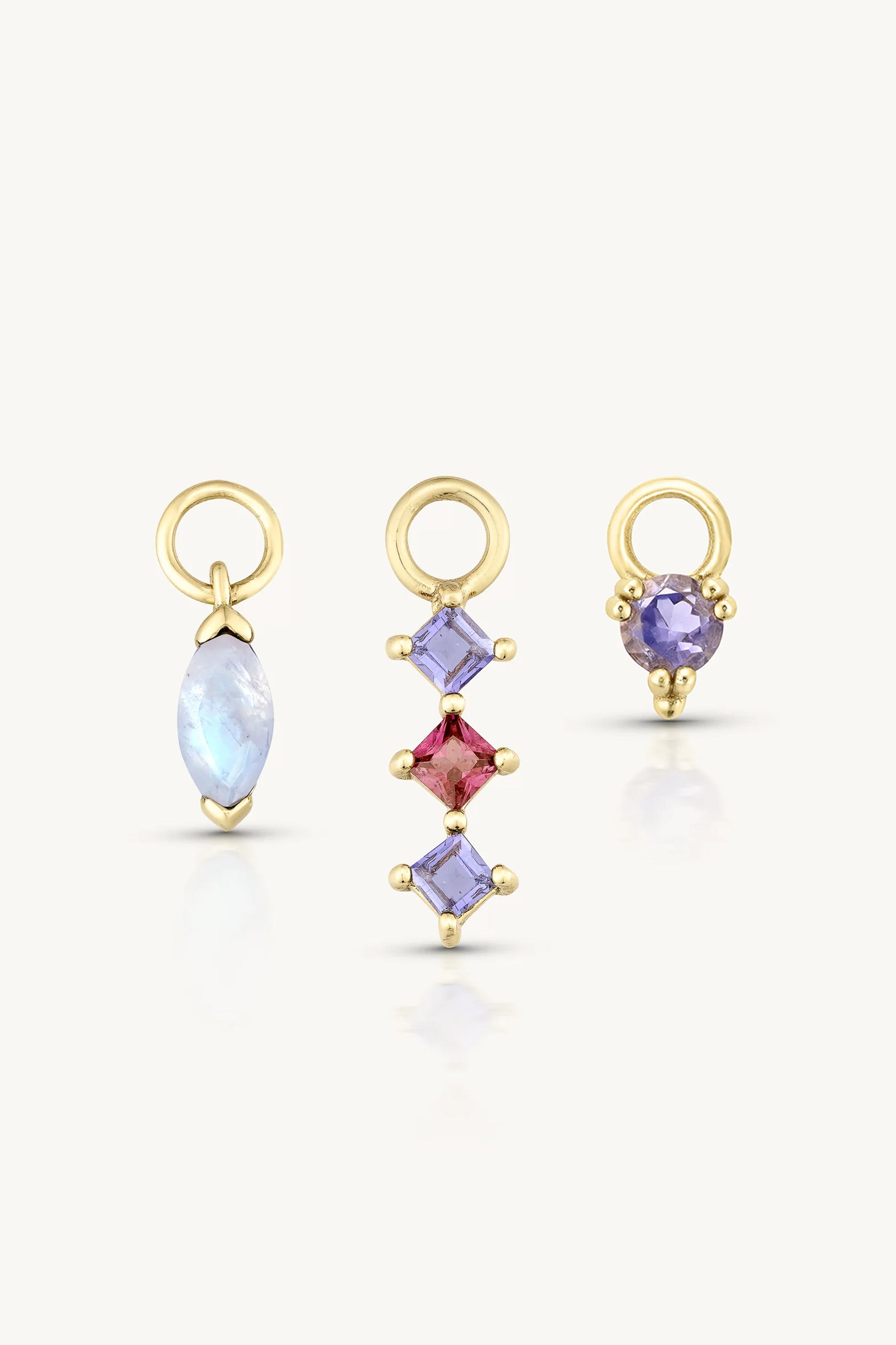 The Trio Moonstone Silver Stack Includes 3 individual charms.