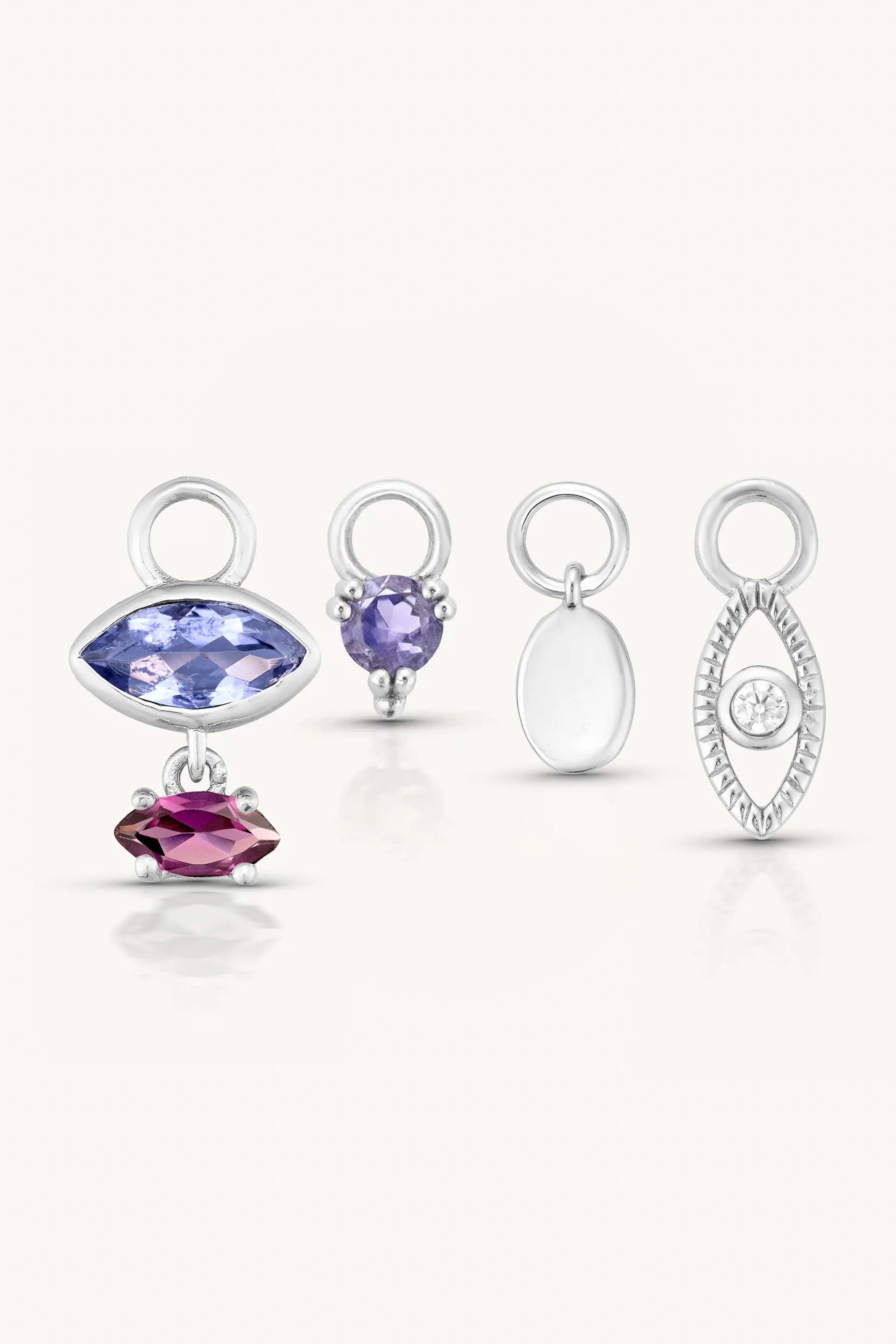The Mila Iolite Silver Stack Includes 4 individual charms.