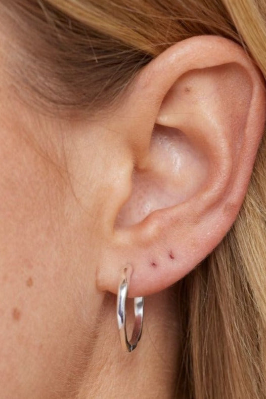 Our Organic Silver Huggies are designed to be layered and worn with our collection of earring charms. A delicate huggy style earring with an organic fluid finish they are available in 3 sizes.