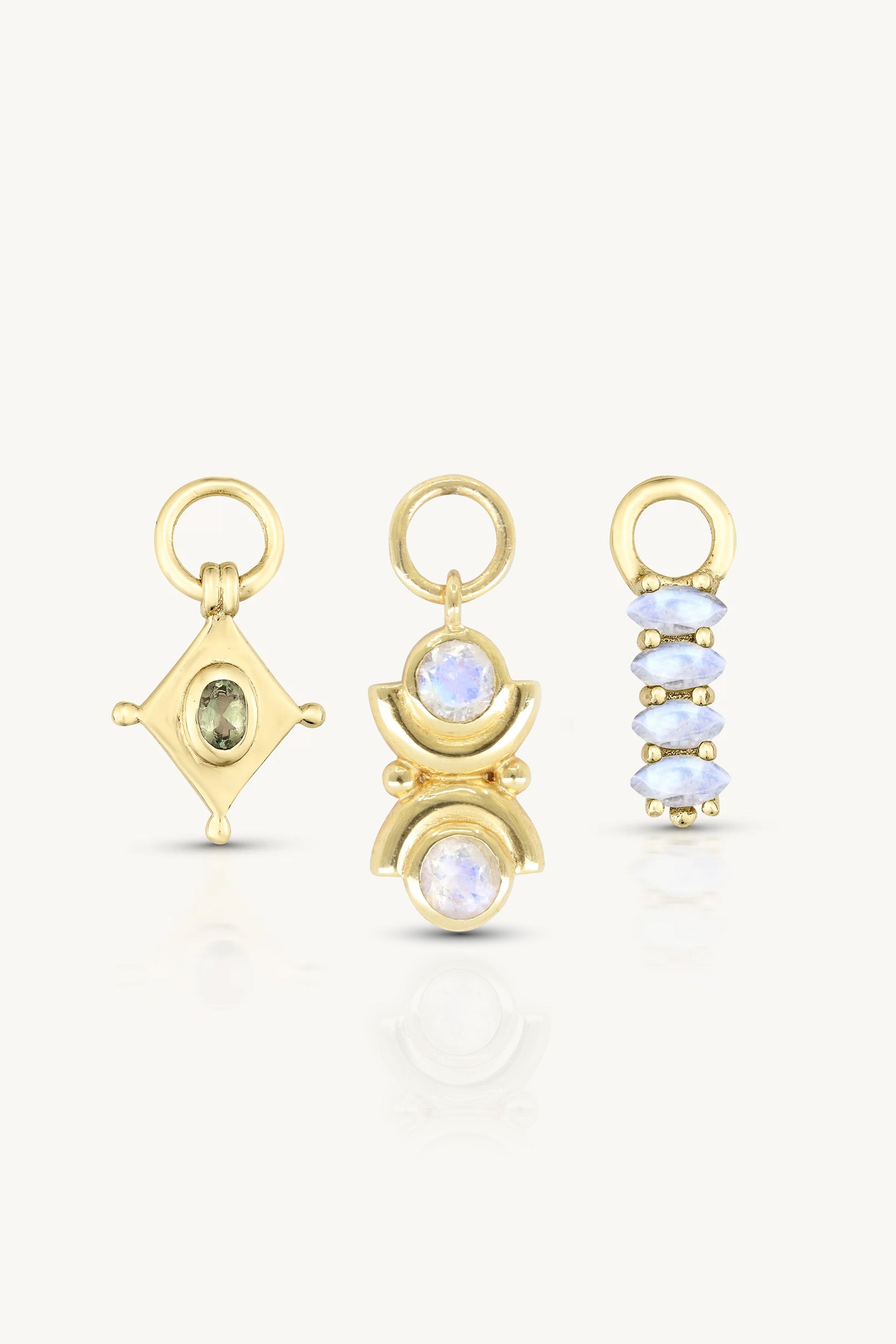 The Shield Apatite Lotus Stack incudes 3 individual charms.