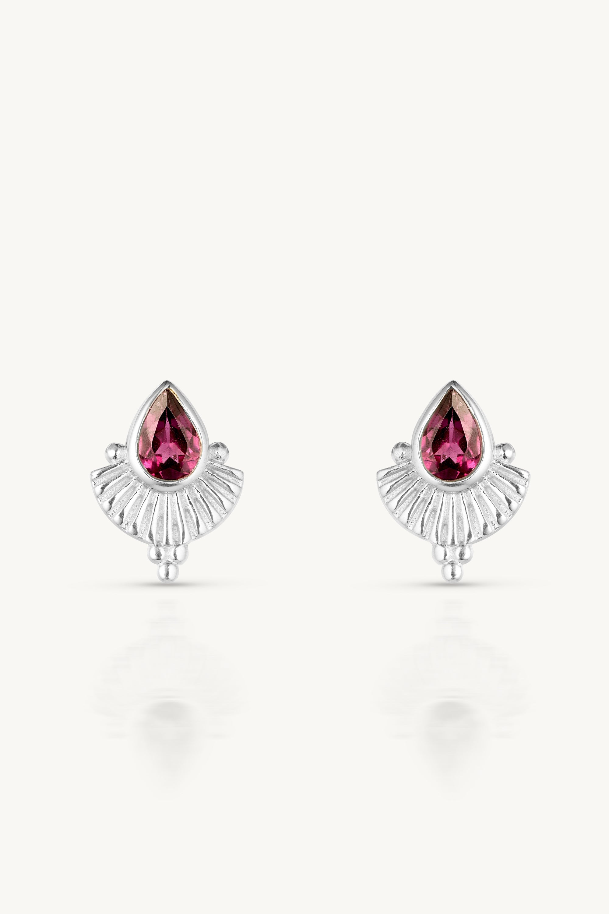 The Venus Earrings are the new and improved version of our classic Cleopatra Earrings. A more refined look, the Venus studs incorporate a faceted natural stone and sit delicately on the ear.