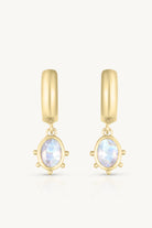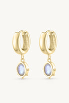 Our Gia Huggies feature a luminous hand faceted oval stone, bezel set with small ball detailing. Designed to hug the ear these earrings sit 2cm in length when worn.