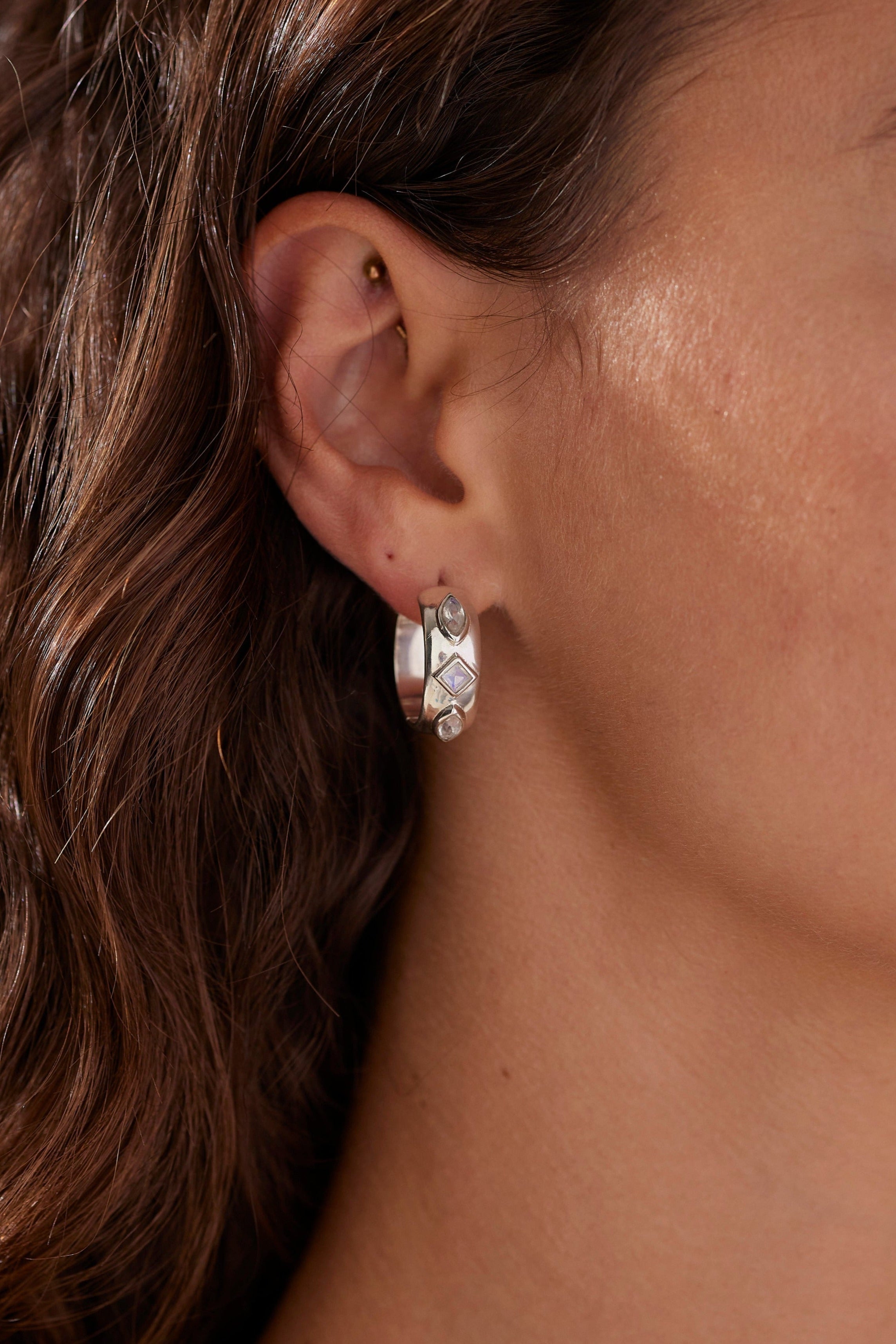 Coronet Moonstone Silver Hoops