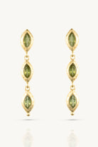 The Isabella Earrings are the big sister to our Belle Huggies. Featuring 3 stunning hand set Apatite stones, these drop earrings are a true statement earring perfect for that special occasion whether it be date night, a wedding or a long lunch.
