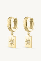 The Starry Night Huggies feature a hand cut moonstone which is claw set into delicate a starburst setting on charm of the earring.