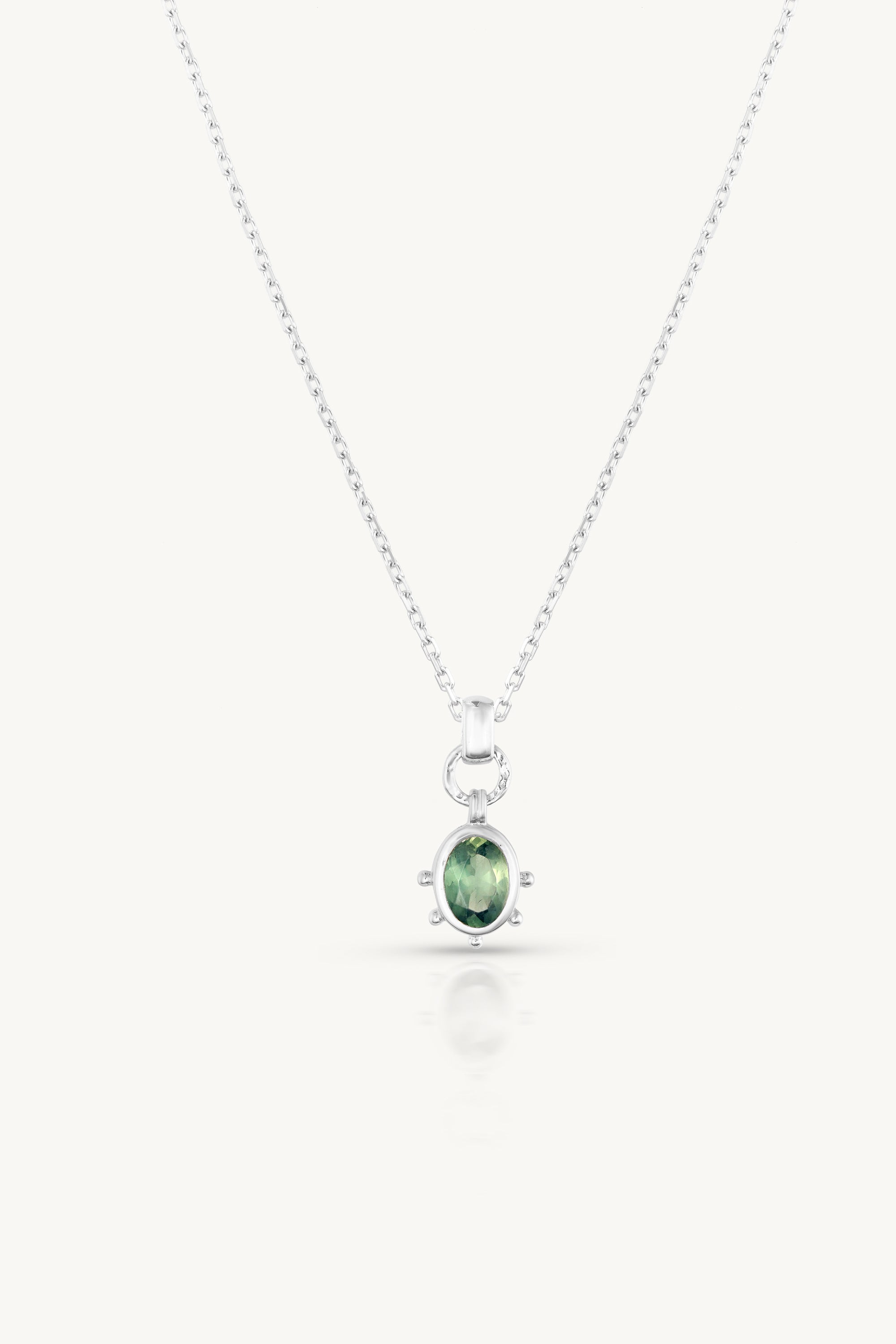 Our Gia Necklace features a luminous hand faceted oval stone, bezel set with small ball detailing. This is the perfect mid length layering necklace.