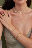 If you are looking to layer your ToniMay necklaces, particularly if you have styles where chain lengths are the same we recommend getting your hands on one of our chain extenders which will allow you to mix and match your chain lengths for layering. Our chain extenders can be used with all lobster clasp chains however are not able to be used with our toggle clasp necklaces such as the Herkimer, Alchemy or Lost Pearl necklaces.