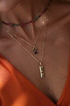 The Coronet Pendant features 3 hand cut stones (2 marquise and 1 baguette) bezel set in a vertical solid bar style pendant. Set on a paperclip chain this is the perfect long line necklace for layering as it can be worn at 3 different lengths on the chain.