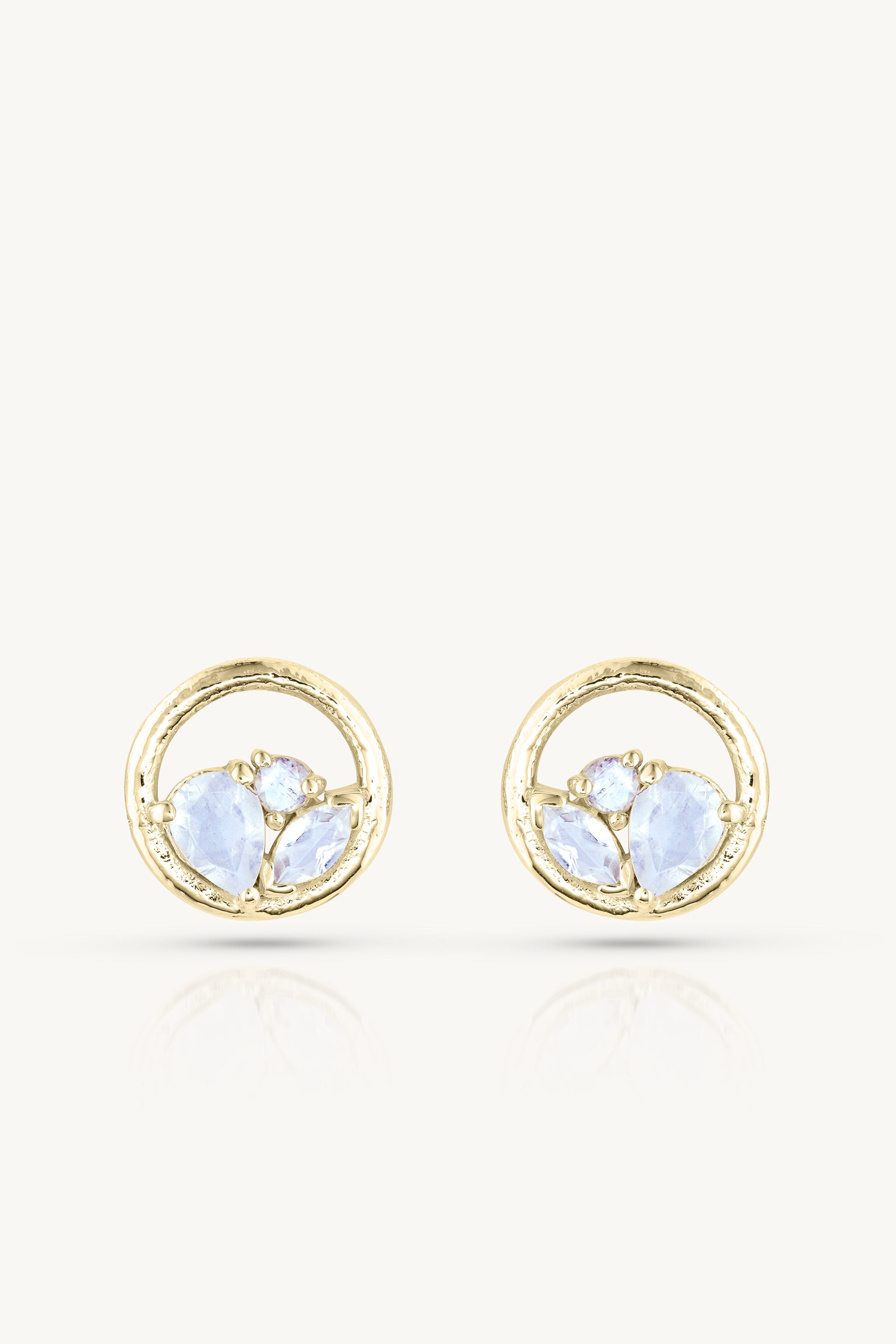 Featuring three Moonstones in a beautifully balanced design, the Pia Earrings offer a unique, organic feel. Nestled together in a lightly textured ring, these earrings bring beauty to your everyday.