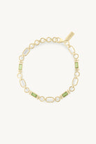 With a unique chain design and baguette-cut Apatite stones nestled within, it's a standout on its own or the perfect addition to your bracelet stack.