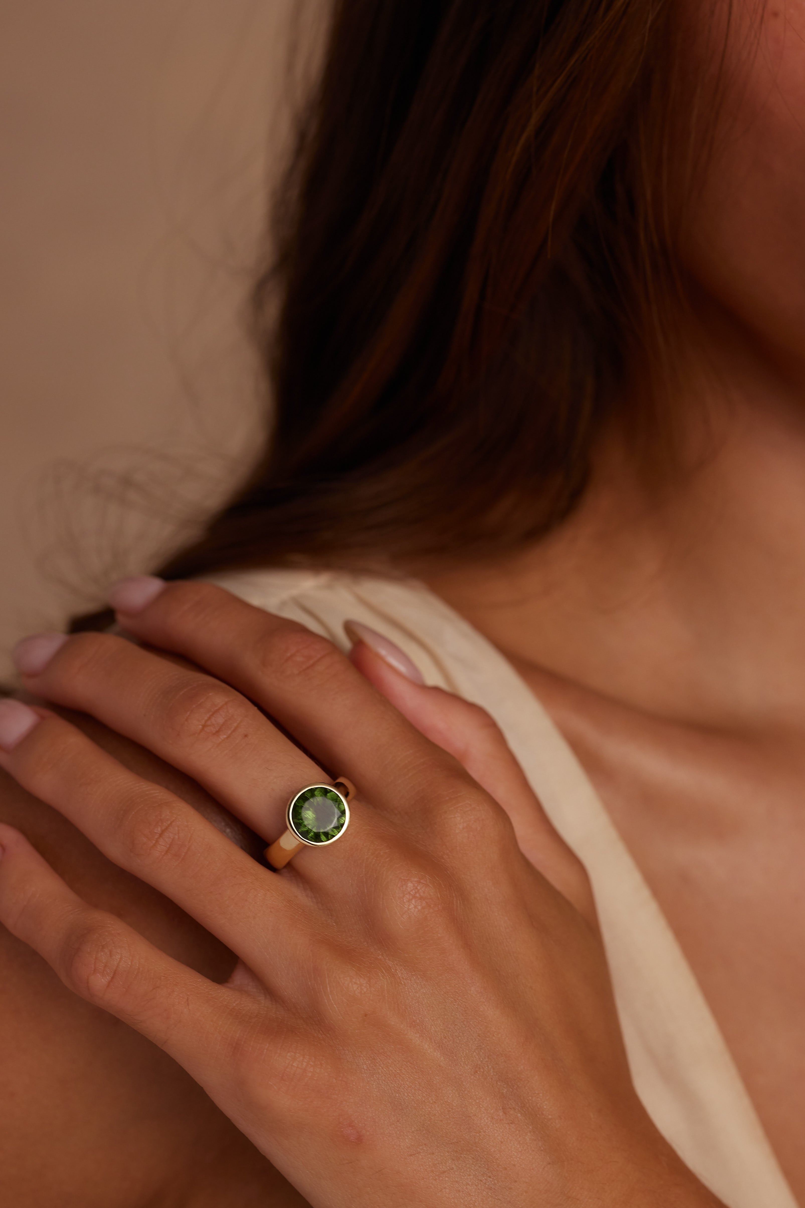 This stunning band features a 3.3ct Brilliant Cut Solitaire Apatite set in a solid bezel setting with a thick 4.5mm domed band.