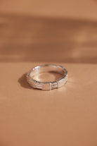 The Vector Ring features a bold crisscrossing pattern, where raised panels of vertical and horizontal lines alternate, creating a dynamic and textured look. This striking design not only catches the eye but also adds a touch of modern artistry to your style.