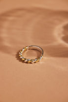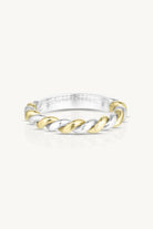 The Tied Mixed Metal Band features a striking twist of silver and gold.