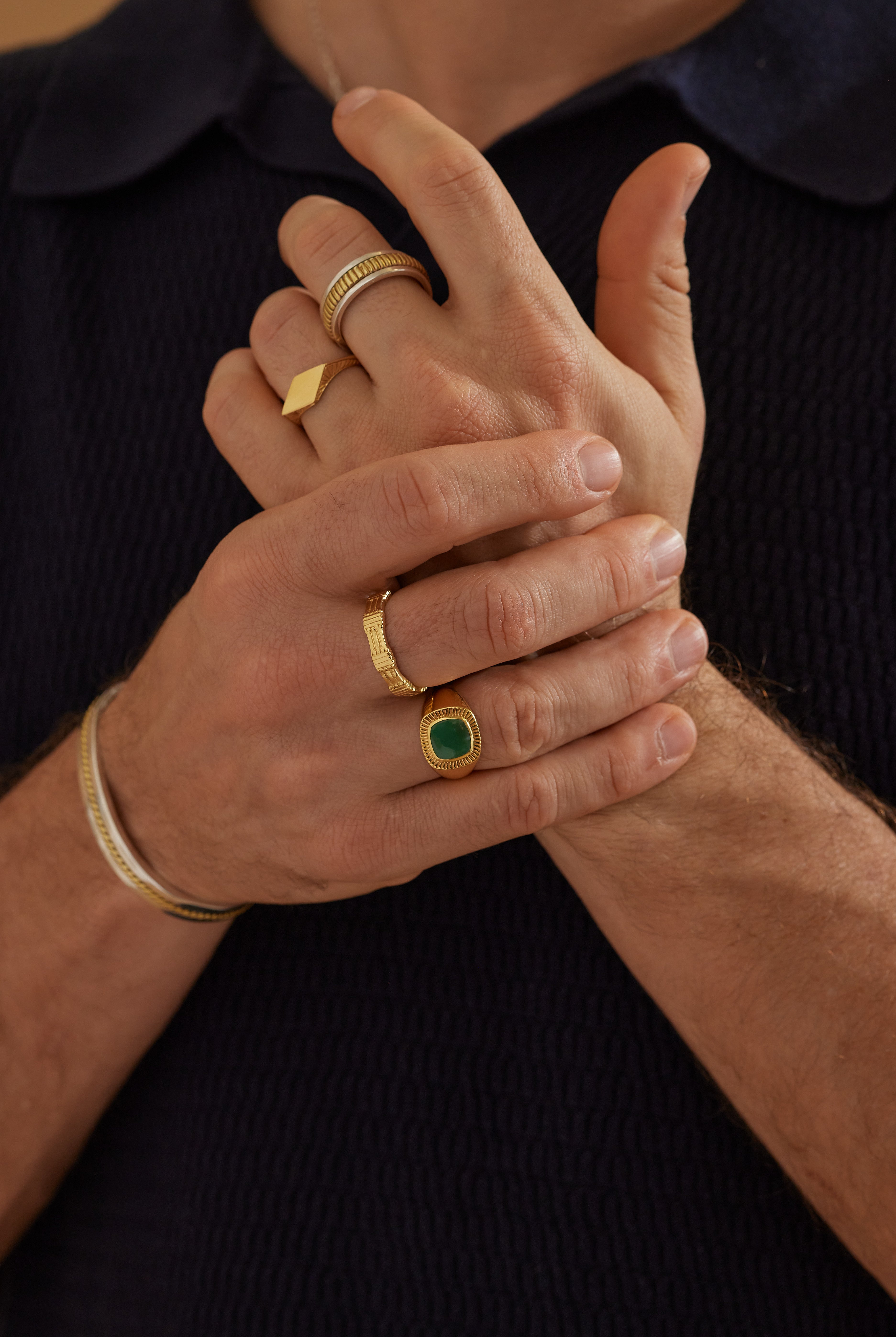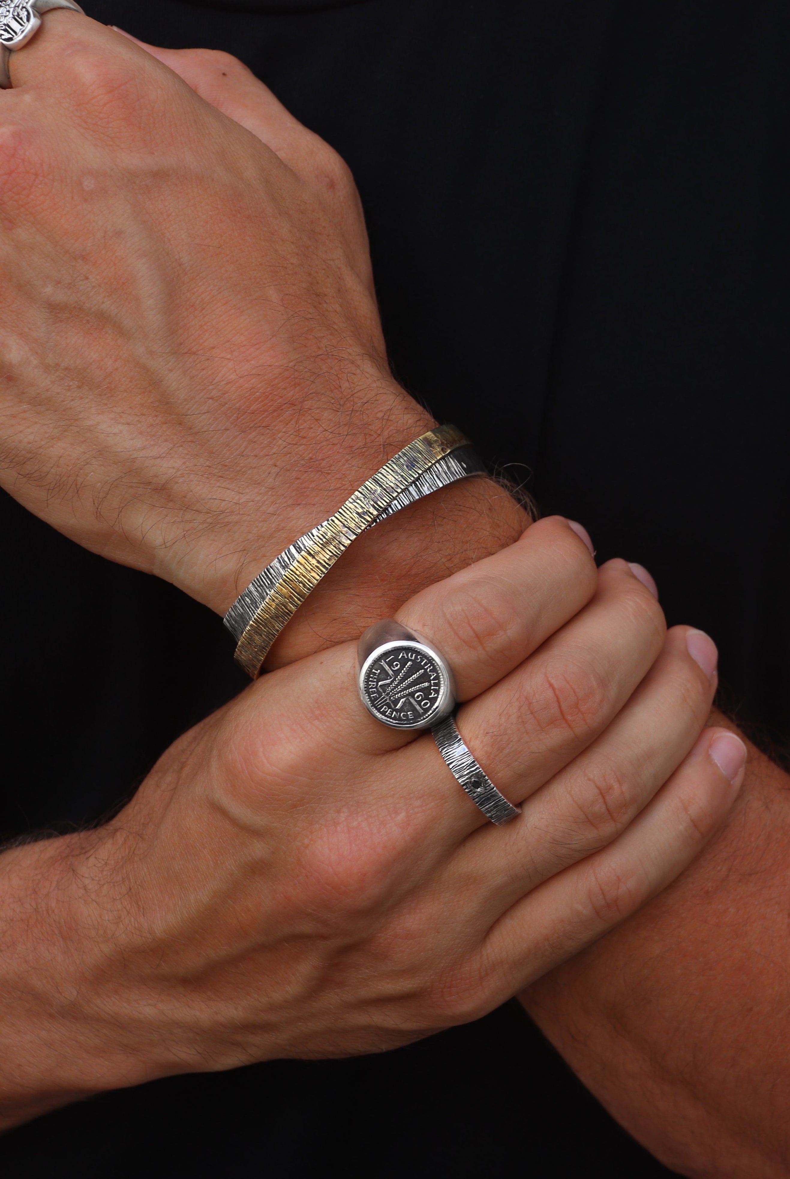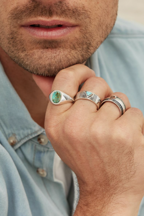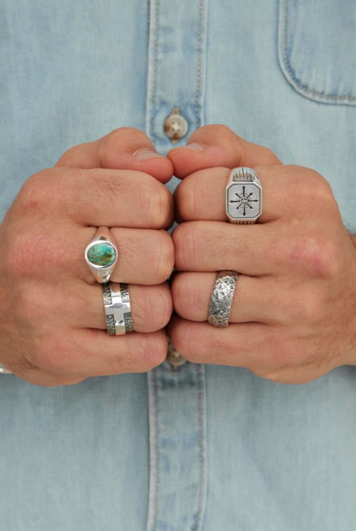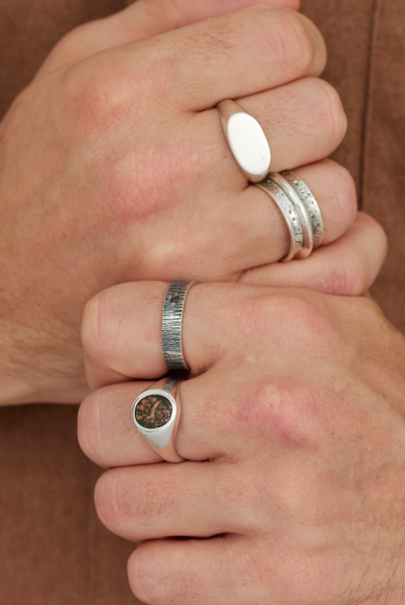Spoil yourself or the man in your life with our collection of unique mens jewellery. Handmade by our master silversmiths our mens range include every day signet rings, statement bands, unique cuffs and necklaces designed to elevevant his everyday.