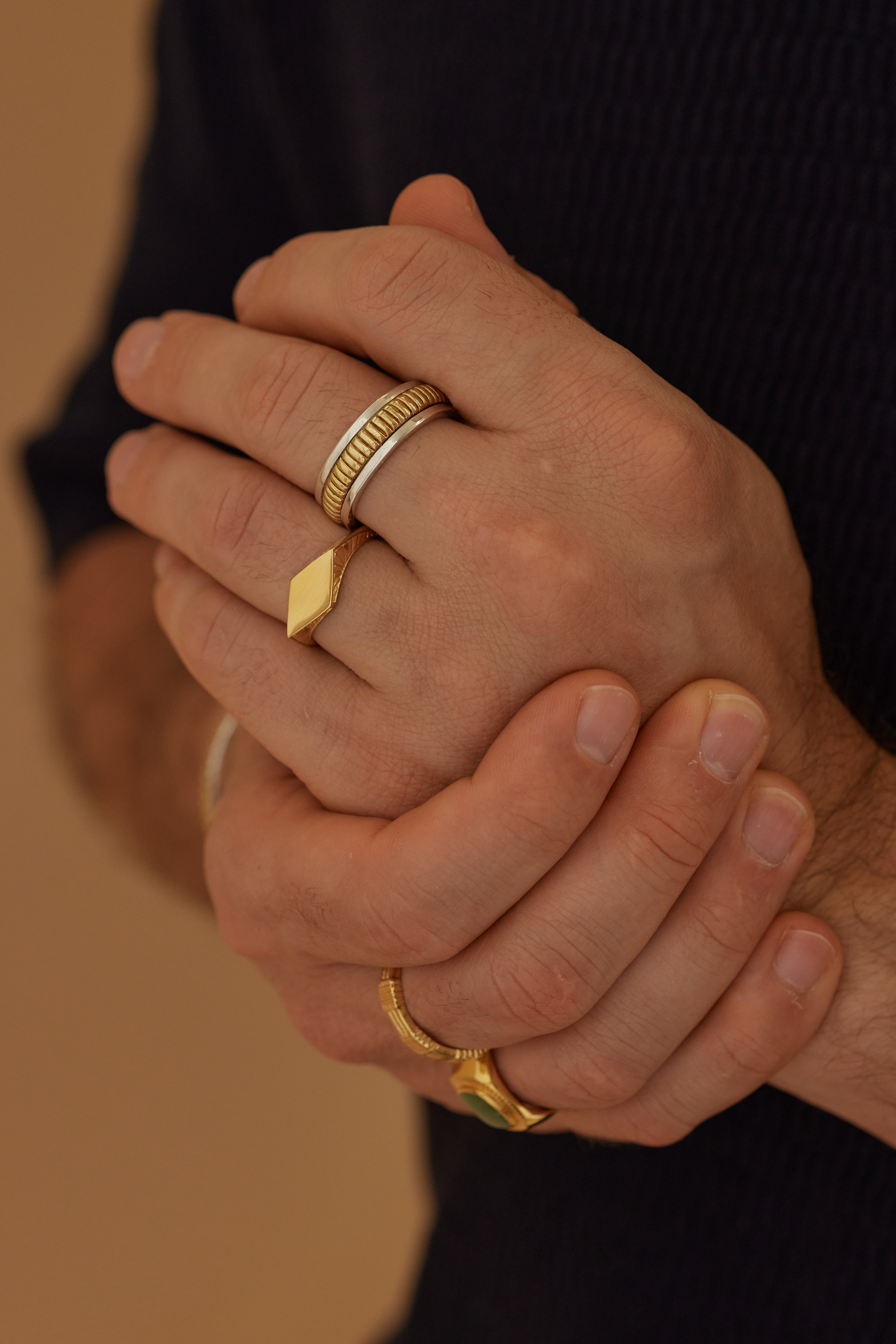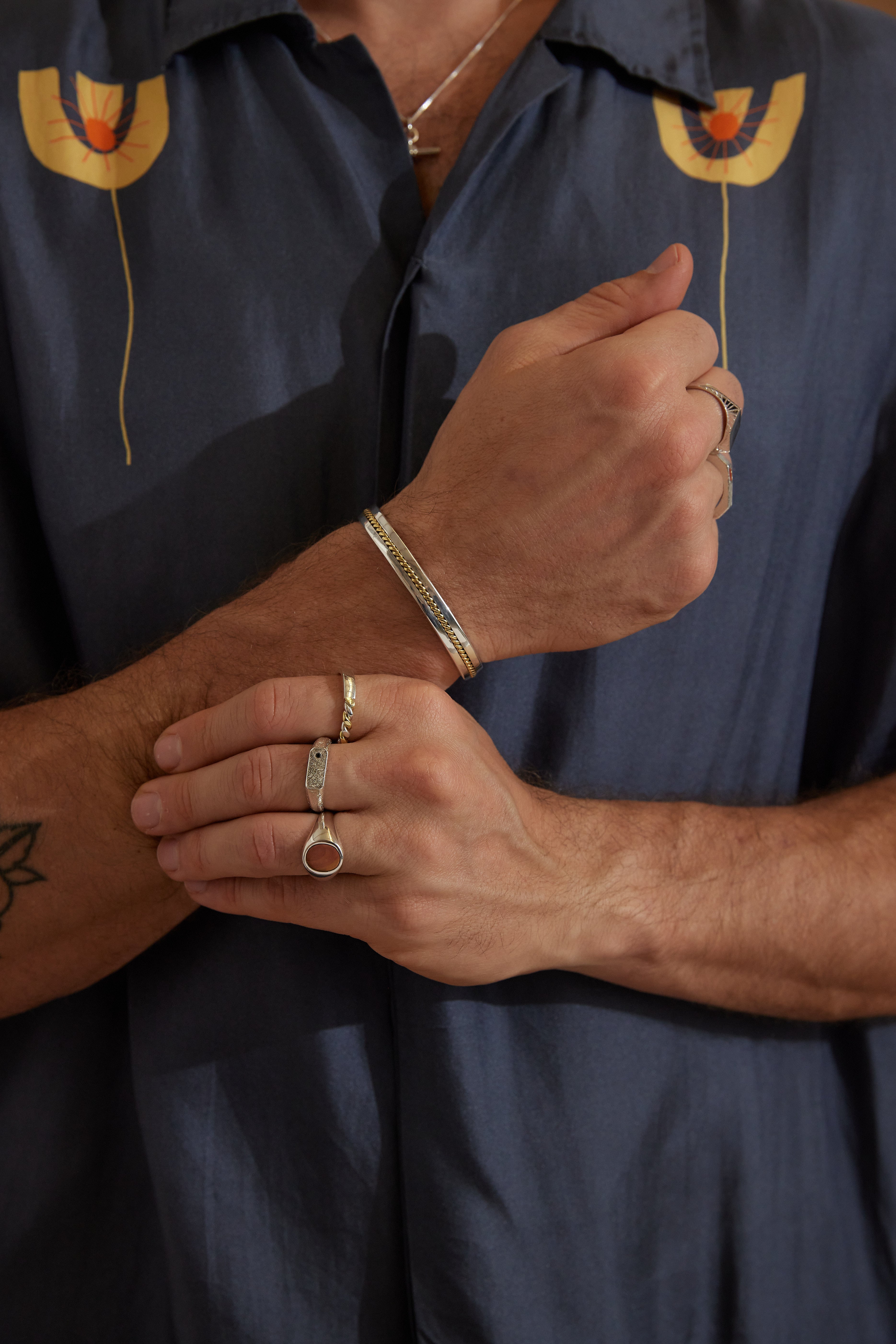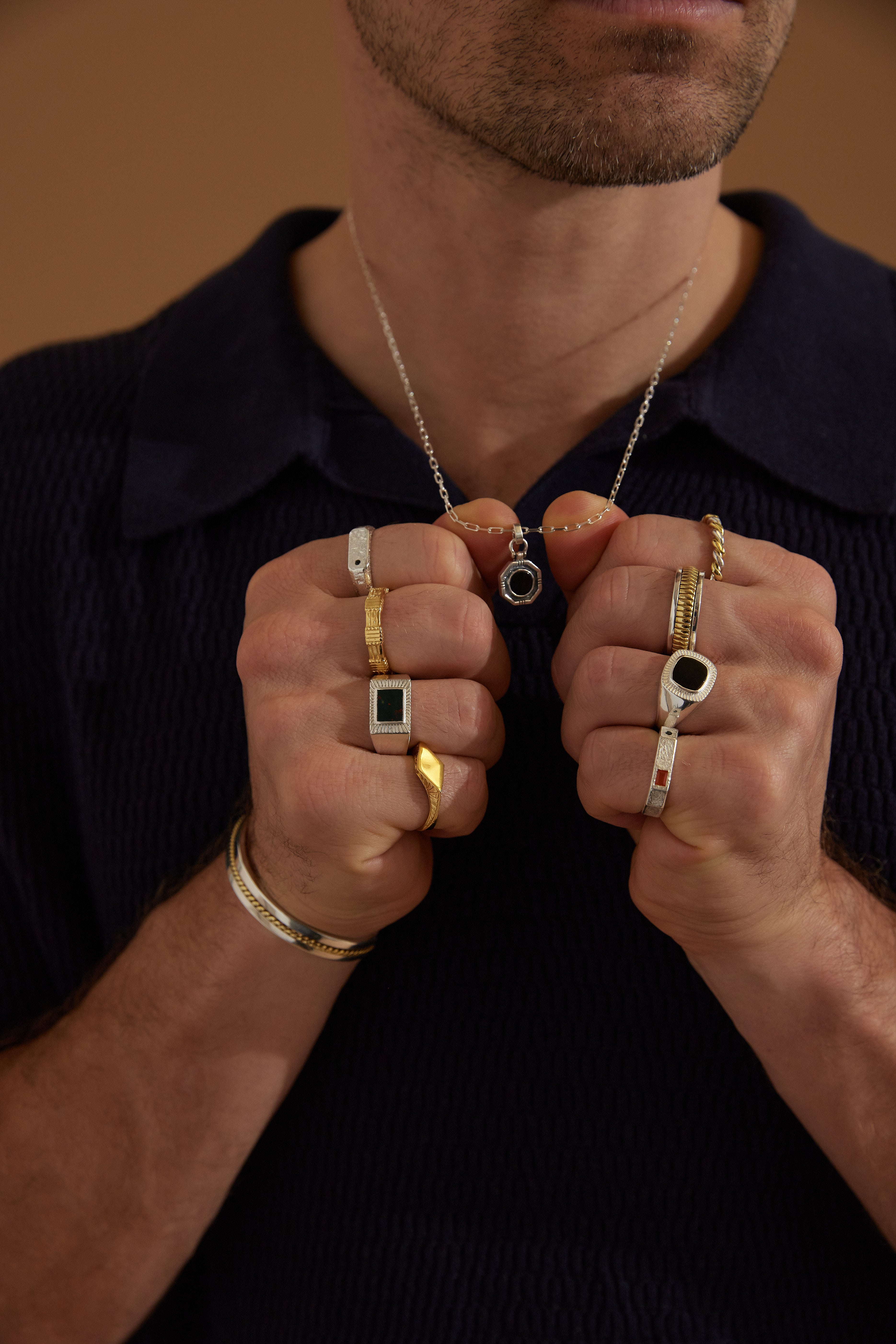 Spoil yourself or the man in your life with our collection of unique mens jewellery. Handmade by our master silversmiths our mens range include every day signet rings, statement bands, unique cuffs and necklaces designed to elevevant his everyday.