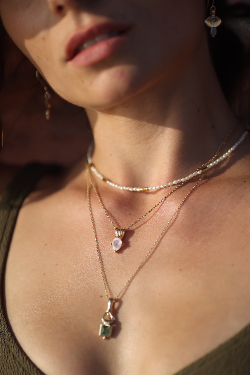 Discover our range of statement pendants, beaded necklace and every day chains designed to layer and love. Designed in our Paddington studio and meticulously handmade with Sterling Silver and 18K Gold Plating.