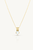 Following the success of our favourite stacking ring the Amie, we are introducing the Amie necklace. This stunning piece features a luminous hand cut pear stone, claw set with a ribbed thick bale.