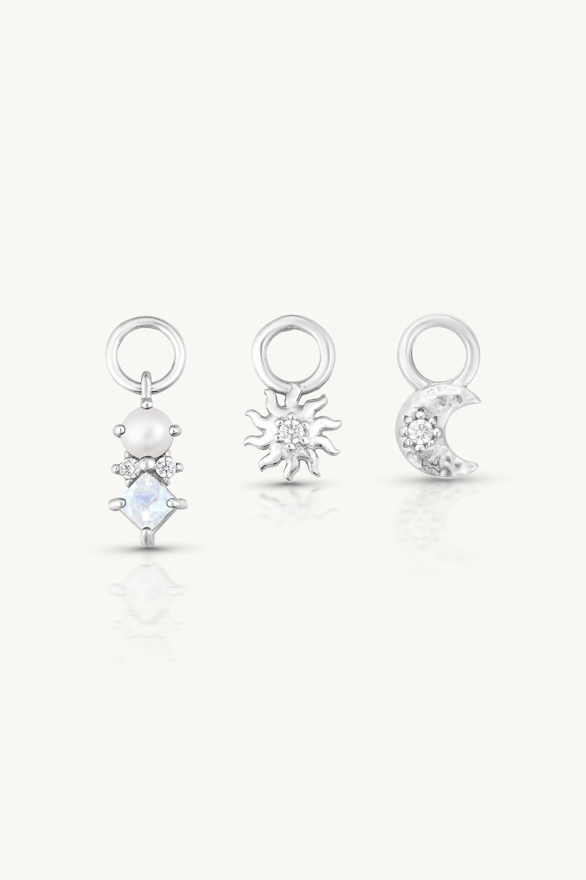 The Farah Pearl Silver Ear Candy Stack includes 3 individual charms.