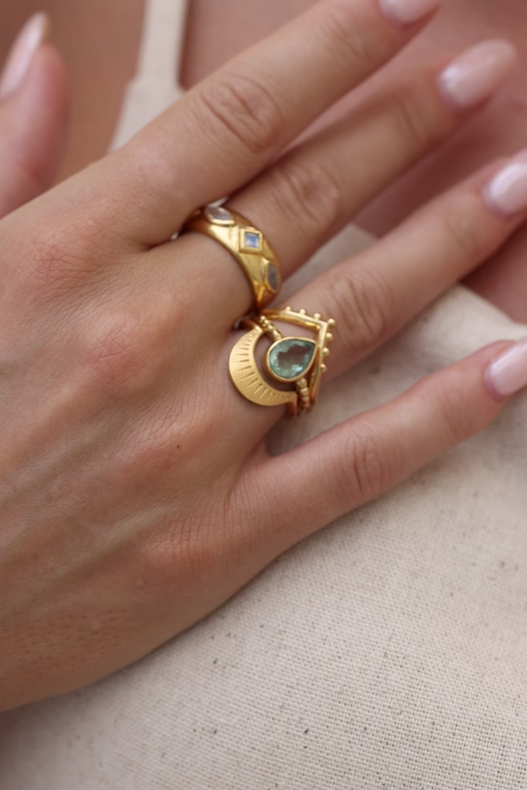 Our Amie Stacker is the perfect band to wear on its own as a statement piece or to stack with our range of crescent and chevron stacking bands.