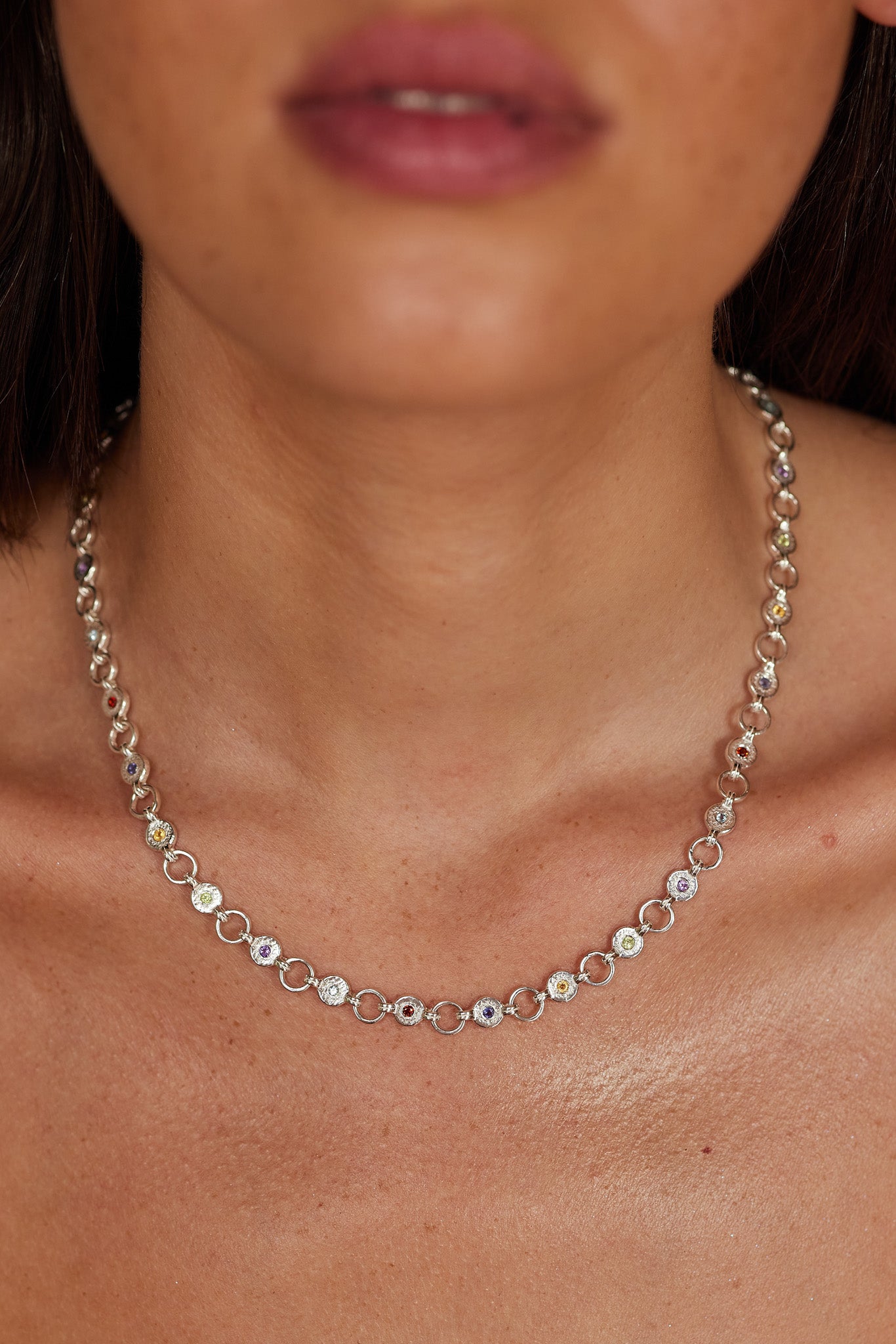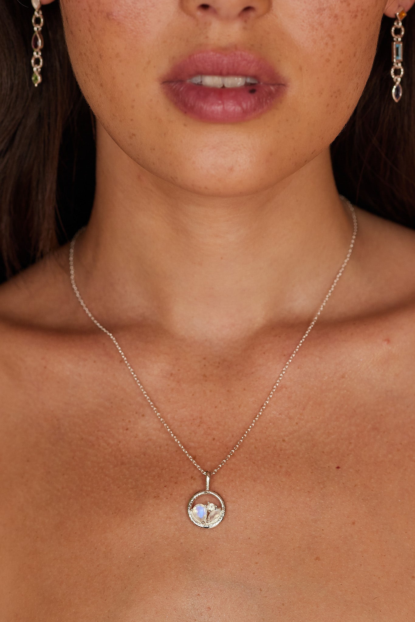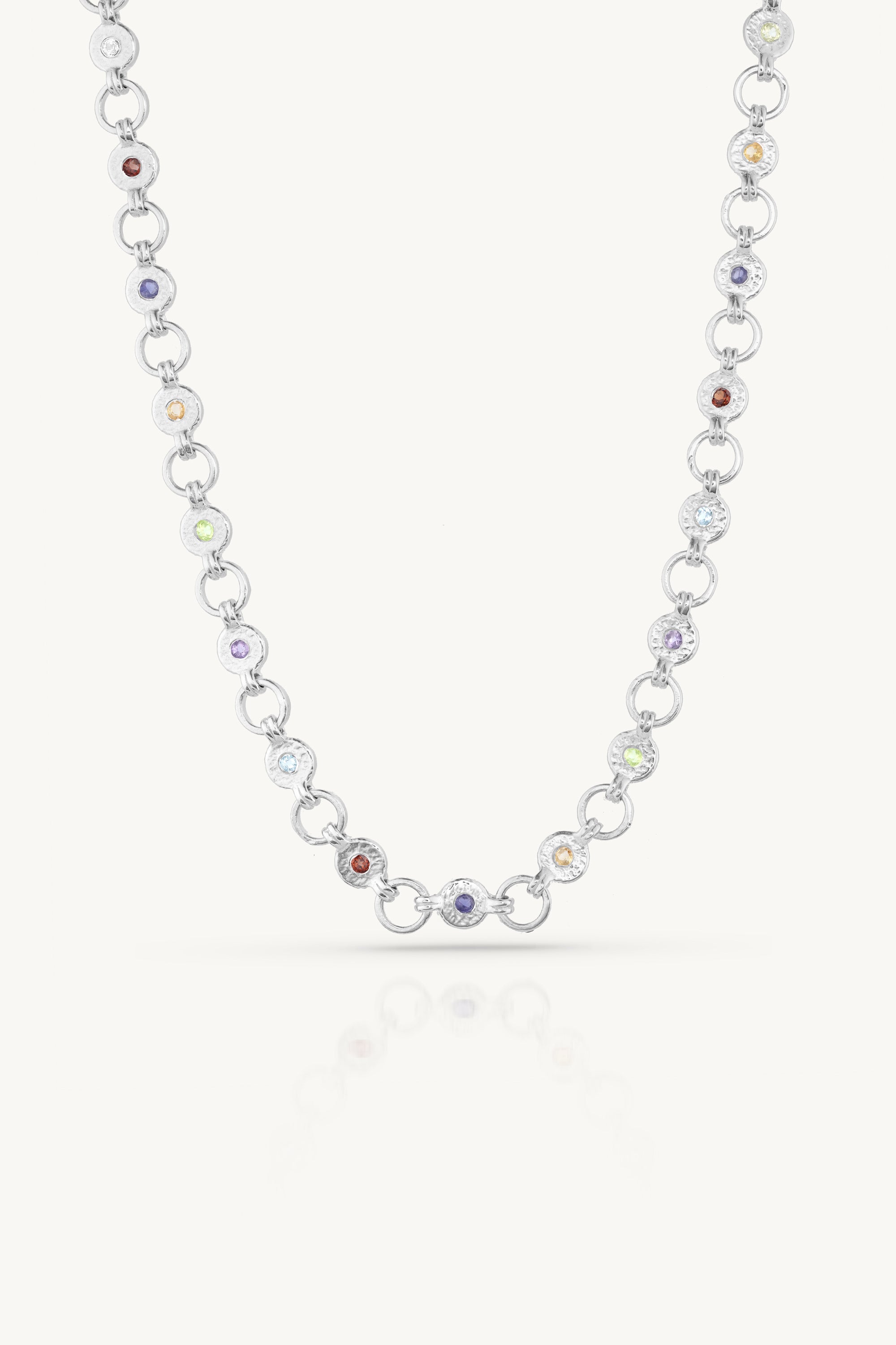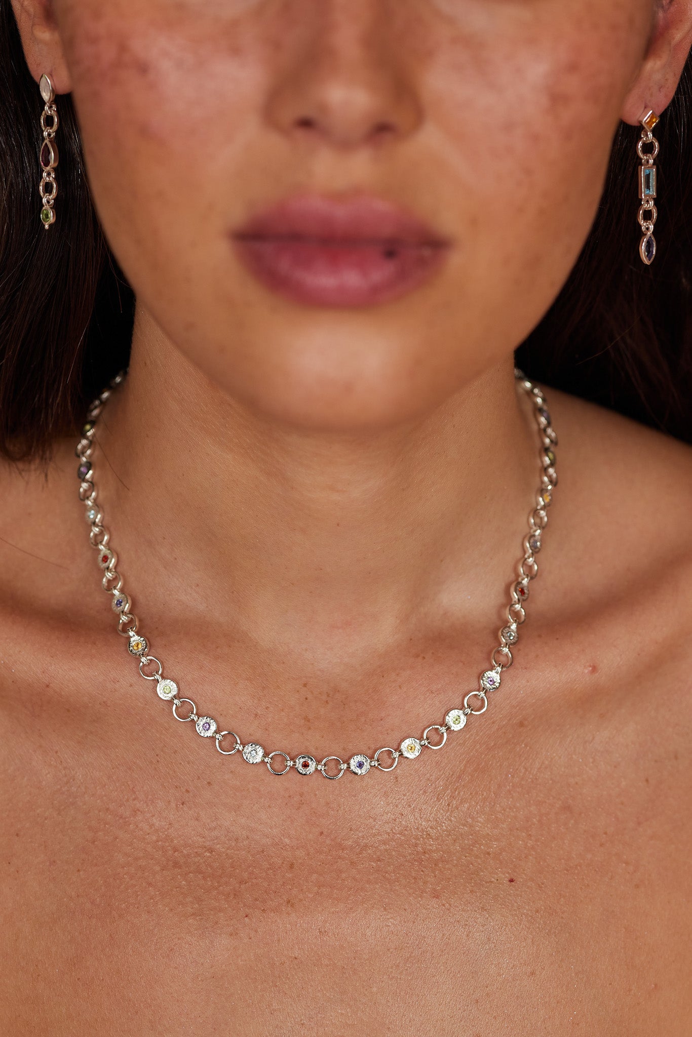 Ellipse Multistone Silver Necklace